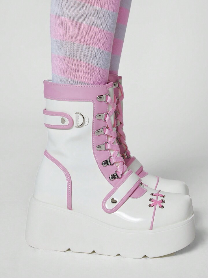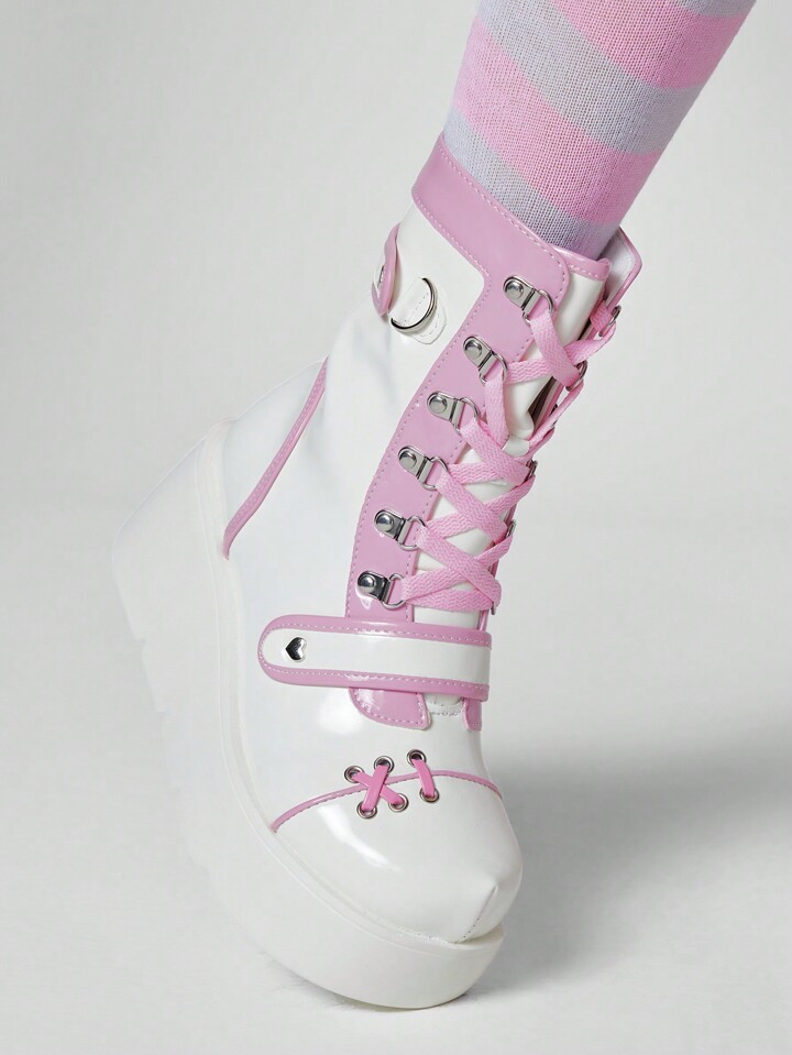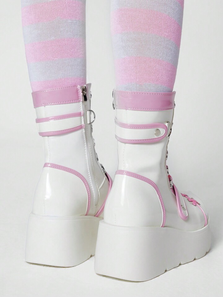 Kawaii Damen Gothic Punk Plateau-Stiefeletten mit Profil-Sohle