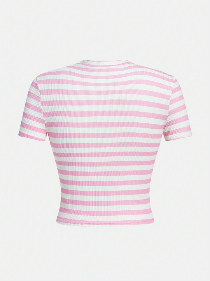 Kawaii Schönes, Süßes, Gestreiftes Slim-fit-kurzarm T-Shirt Für Damen