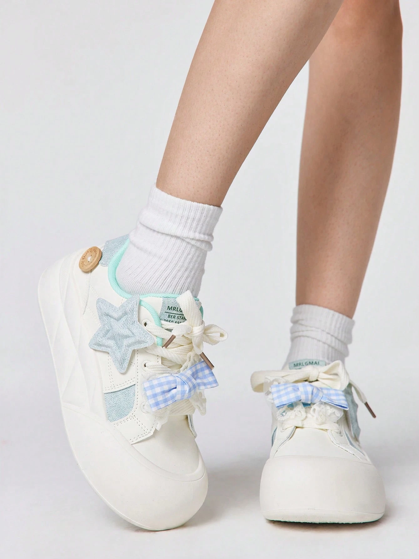 Kawaii Damen Rosa Schleife Schnürung Lässig Weiche Sohle Leichtgewicht Laufschuhe, Mary Jane Kleine Lederschuhe, Süßer Stil Sneaker Trainer