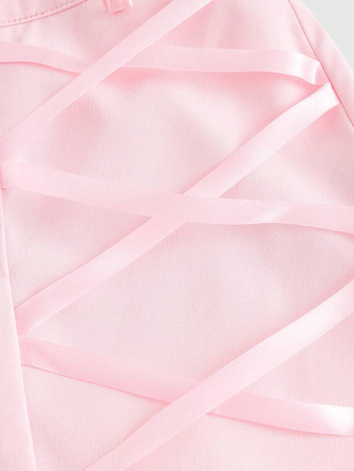 Kawaii Große Größen Cargo Hose mit Damen Band, Taille, Seite, Streifen, Pattentasche,