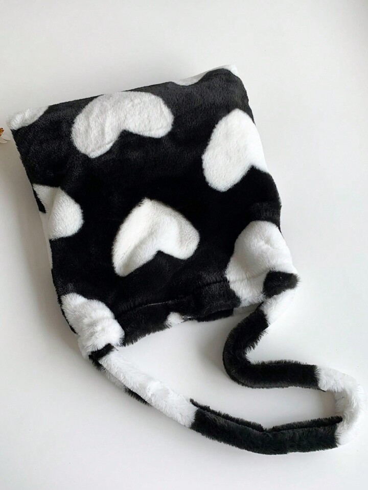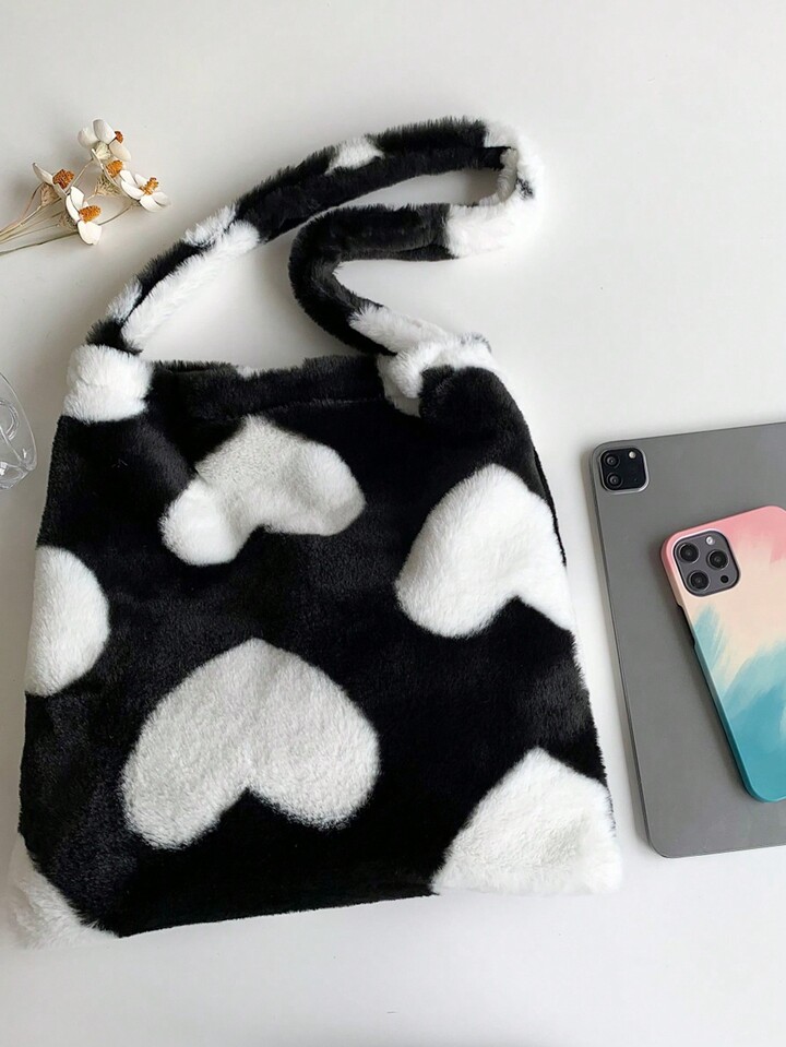 Kawaii Schultertasche Damen Plüsch Herz Muster,