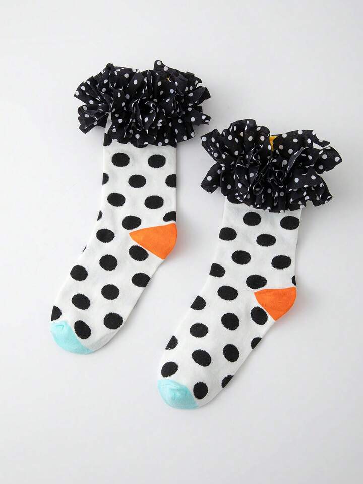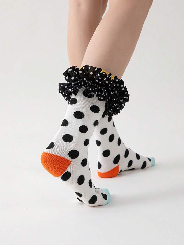 Kawaii Damen Socken mit Polka Punkt Muster, Mesh Einsätzen und Rüschen-Saum, süß