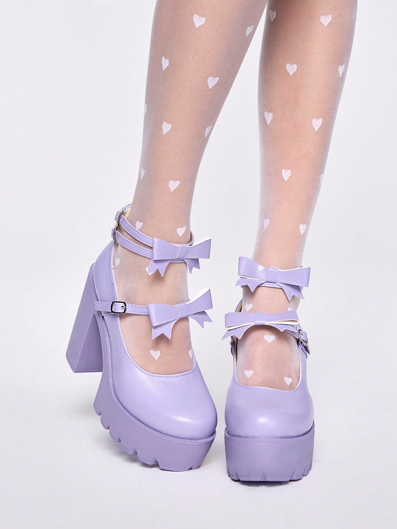 Kawaii Damen Lila Mary Jane High Heel Schuhe, geschlossene Zehenpartie Plateau Riemen-Pumps mit dickem Absatz, wasserdicht für Partykleider