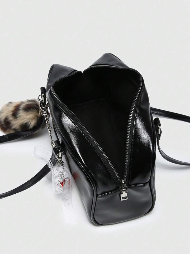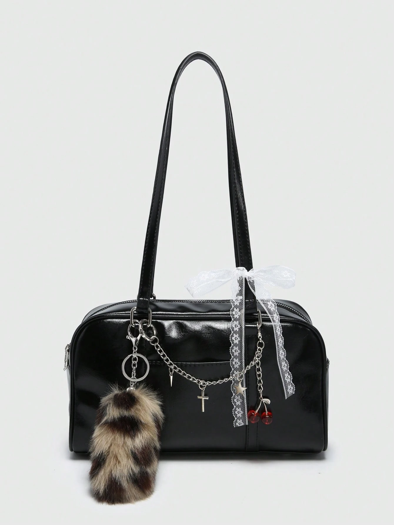 Kawaii Damen Retro süße karierte Schleifen-Träger Kirsche Herz Dekor Schulter-/Achseltasche mit mehreren Taschen Schultertasche