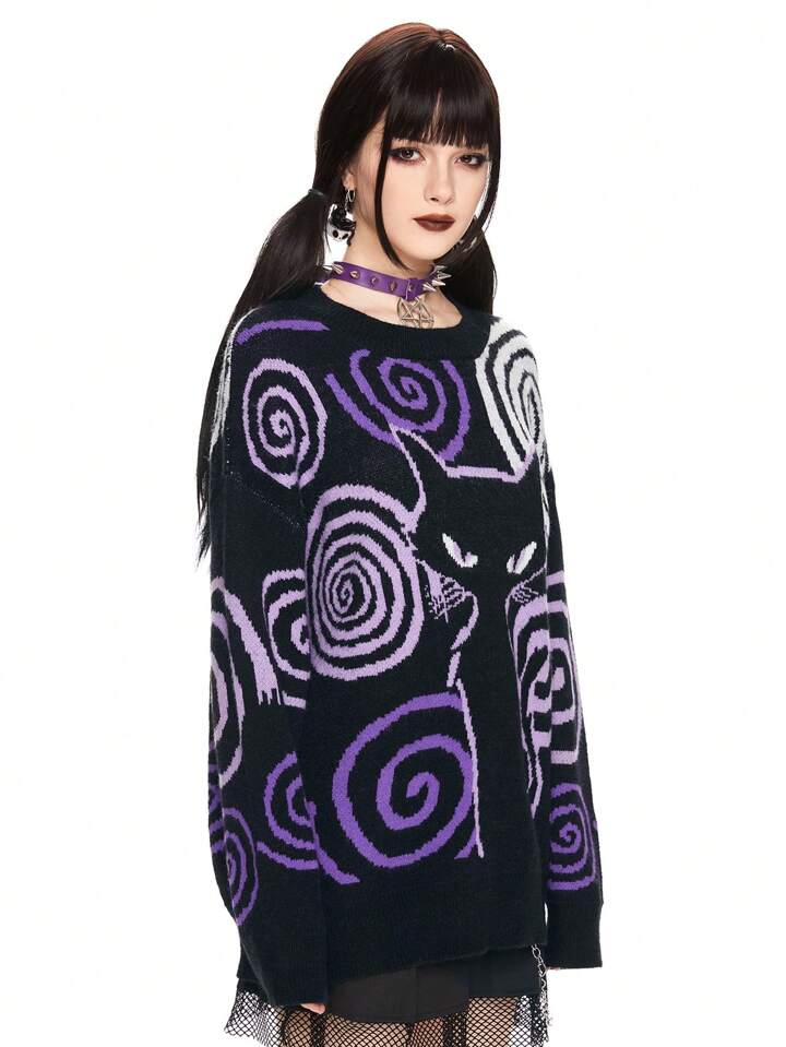 Kawaii Damen Rundhals Langarm Lässig Katzen Grafik Strickpullover