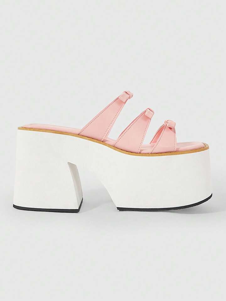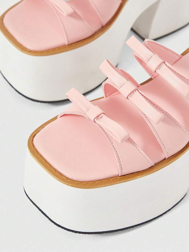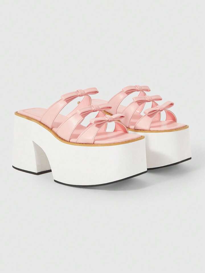 Kawaii Damen sexy Schleifen Plateau Sandalen - Punk Stil Rückengurt offene Zehenfront Blockabsatz Schuhe - bequem atmungsaktiv Slip-On