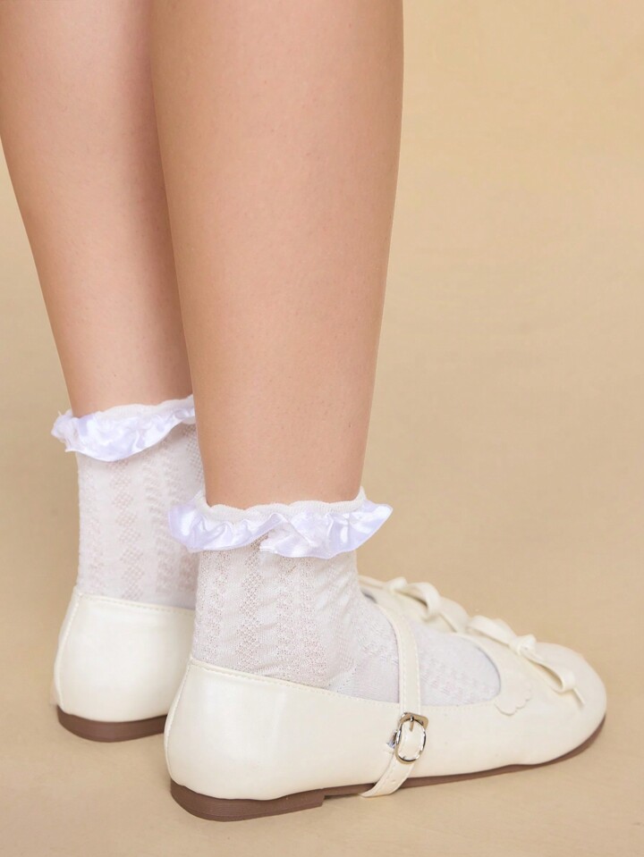 Kawaii Damen weiche Mary Jane Flats mit Spitzenschleife, Schnalle, Slipper, Rundkappe, niedriger Absatz, Pantolette, weiße Abend Flats für den Valentinstag