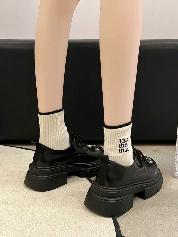 Kawaii Frauen Einfarbige Runde Zehennägel Lace-up Keilabsatz Und Dicke Sohlen Schuhe