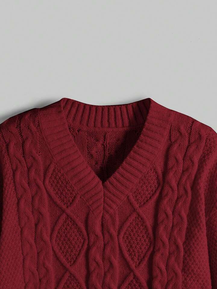 Kawaii Damen V-Ausschnitt Oversized Langarm Pullover, Langarm Oberteil