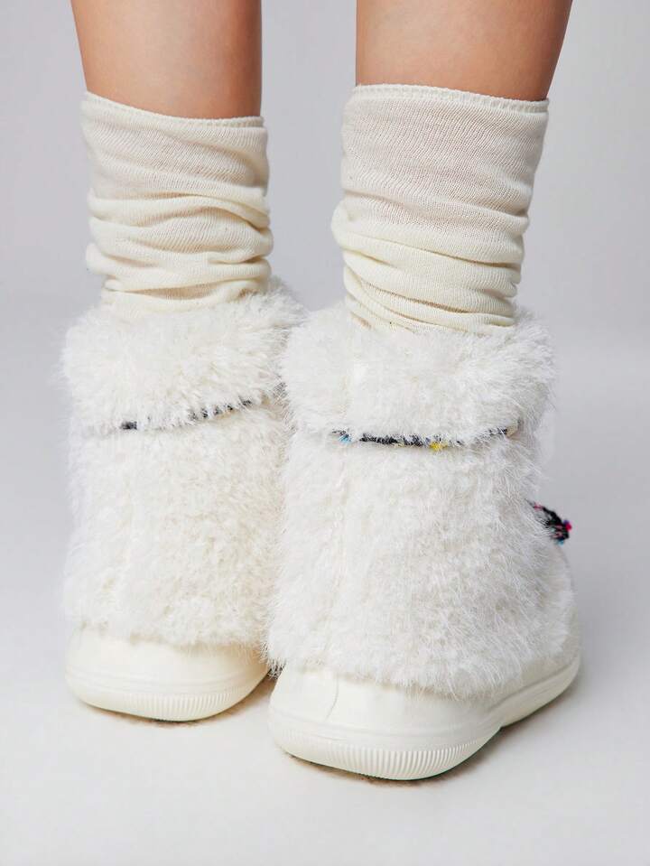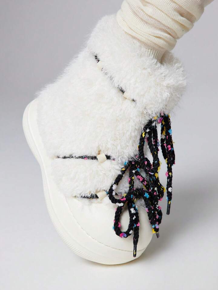 Kawaii Damen Winter Schnürstiefeletten mit Patchwork-Design und Kunstfell für den täglichen Gebrauch