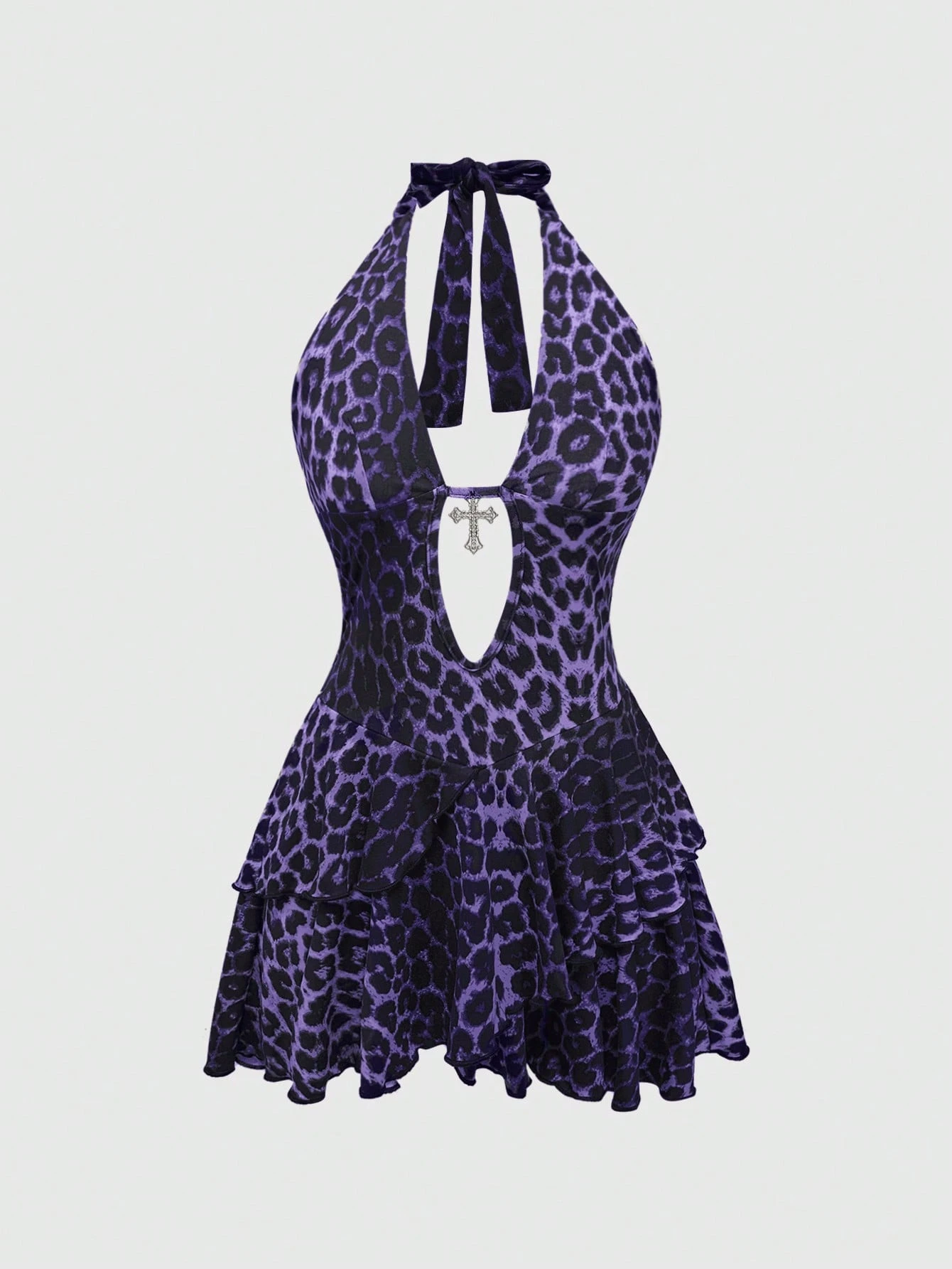 Kawaii Damen Y2K sexy Harajuku Gal Gothic Kreuzträger Leopard Muster Mini Kleid