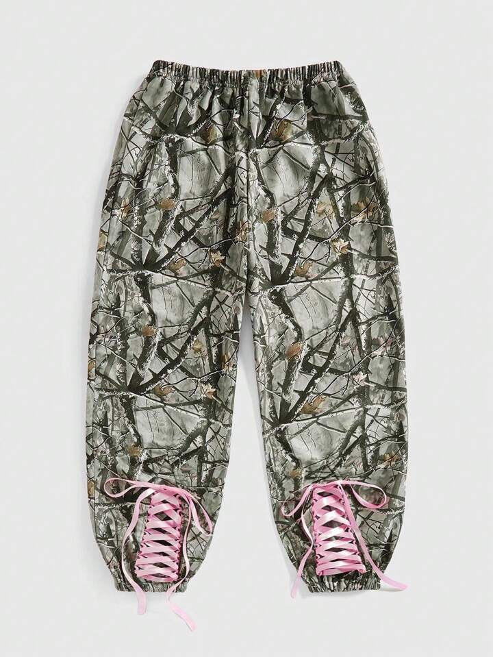 Kawaii Y2K Abby Streetwear weite Camouflage Schleife Bandage Jogginghose in Große Größen für Damen