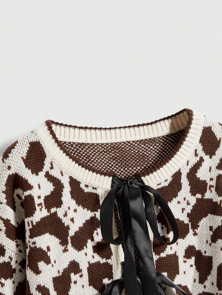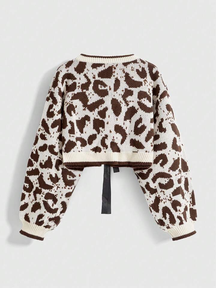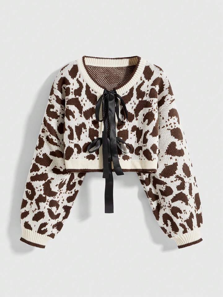 Kawaii Y2K modischer Leoparden-Muster Schleifenkardigans, Herbst/Winter