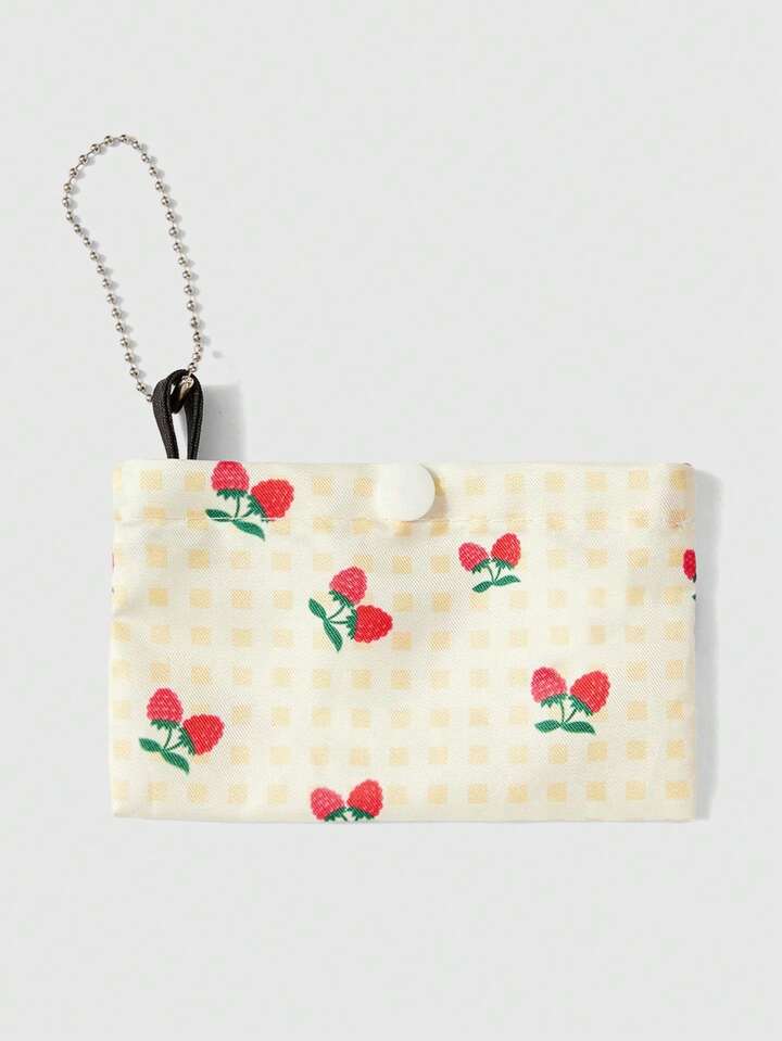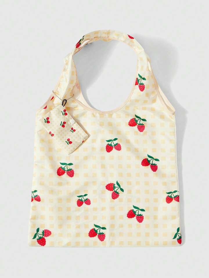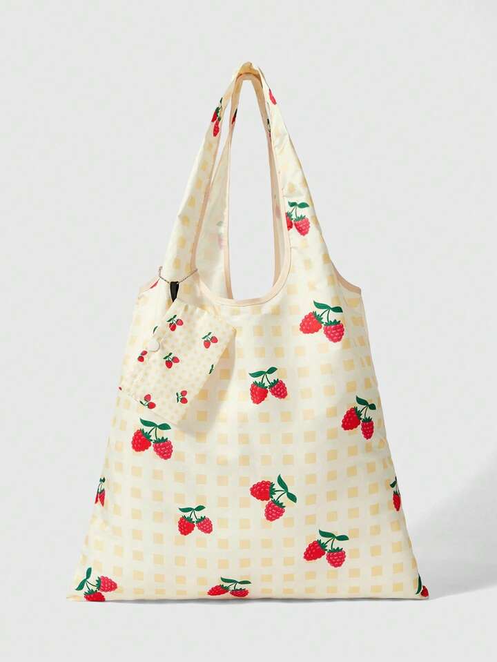 Kawaii Gelbe karierte Erdbeerdruck Tragetasche, geeignet für den täglichen Gebrauch