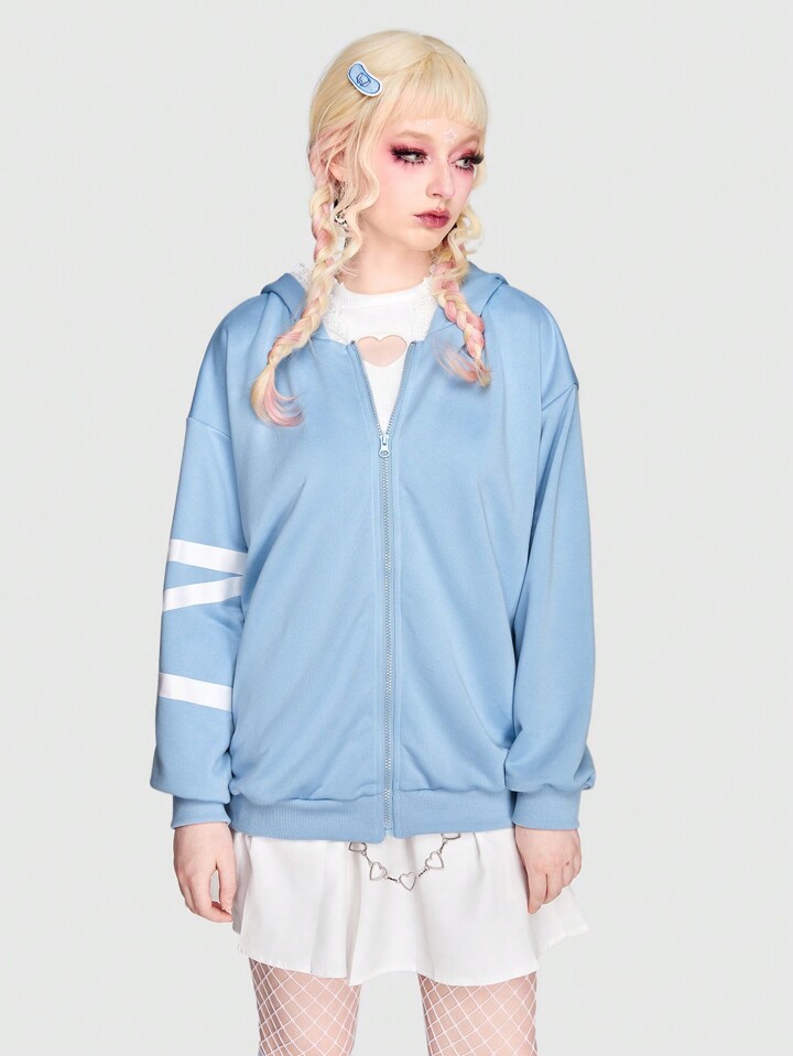 Kawaii Hoodie mit Reißverschluss, Drop Shoulder 3D Ohr Design,