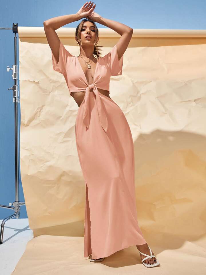 Kleid mit Knoten vorn, Ausschnitt und Schlitz