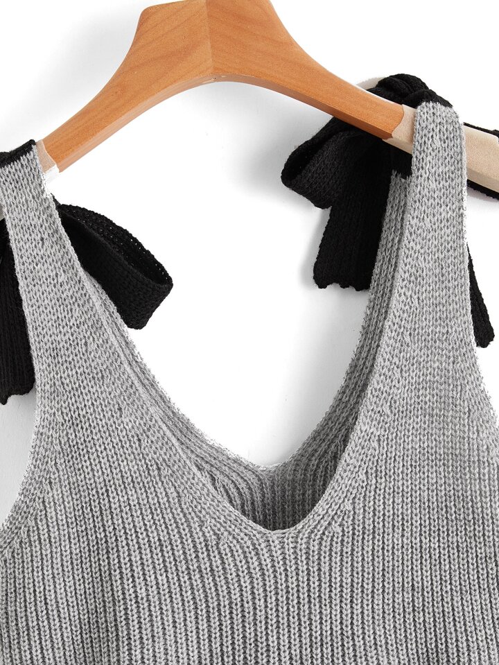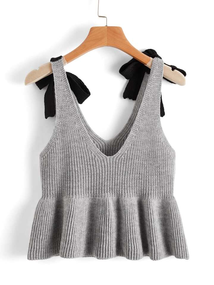 Strick Top mit Knoten auf Schulter und Rüschenbesatz