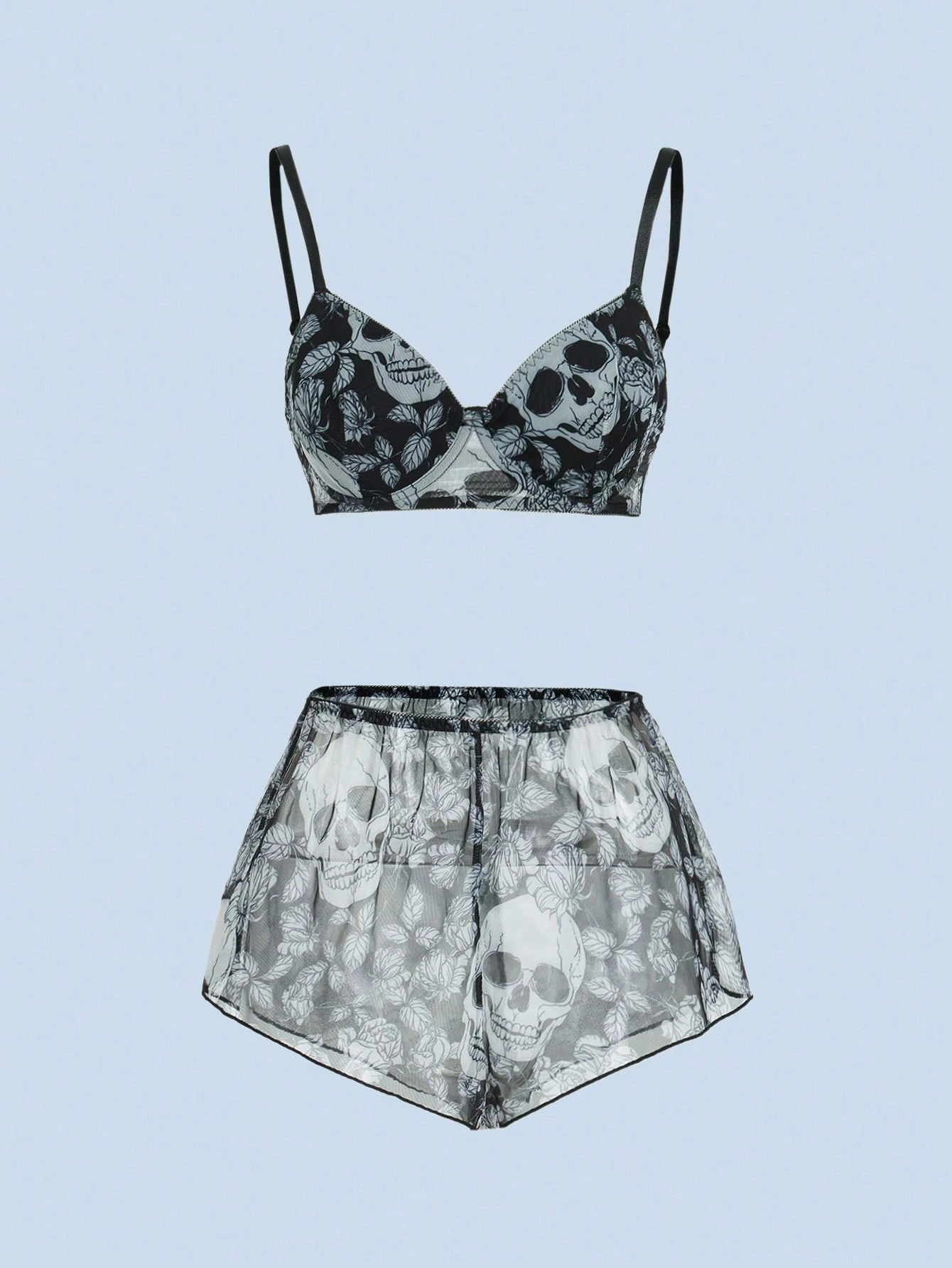 LOLITAGraphics Dessous Set mit Schädel Muster, Mesh Bügel,