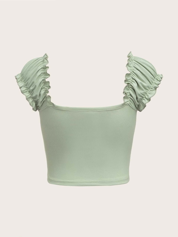 Crop T-Shirt mit Spitzenbesatz, Rüschen