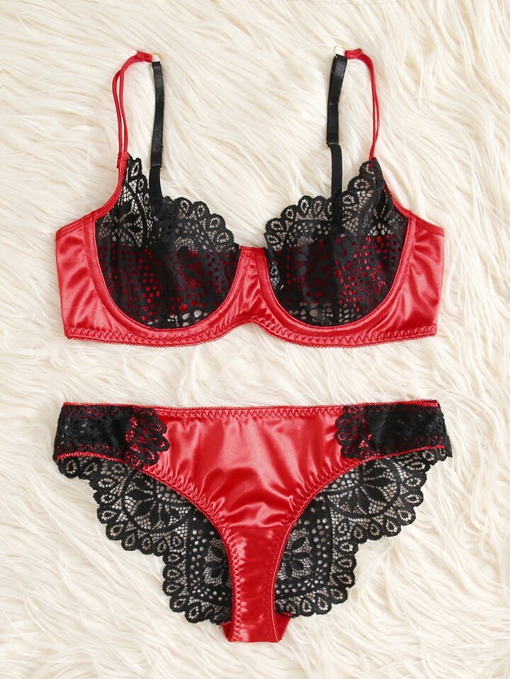 Satin Dessous Set mit Spitzen