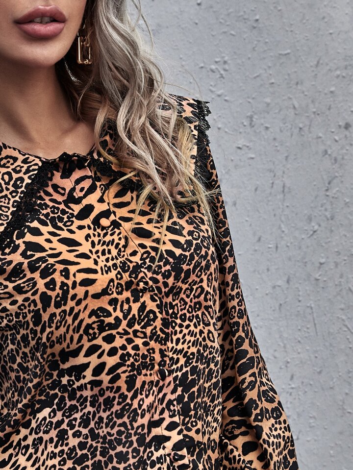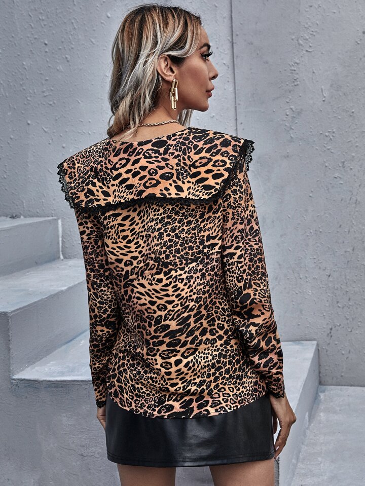 Bluse mit Spitzenbesatz, Peter-Pan-Kragen und Leopardenmuster