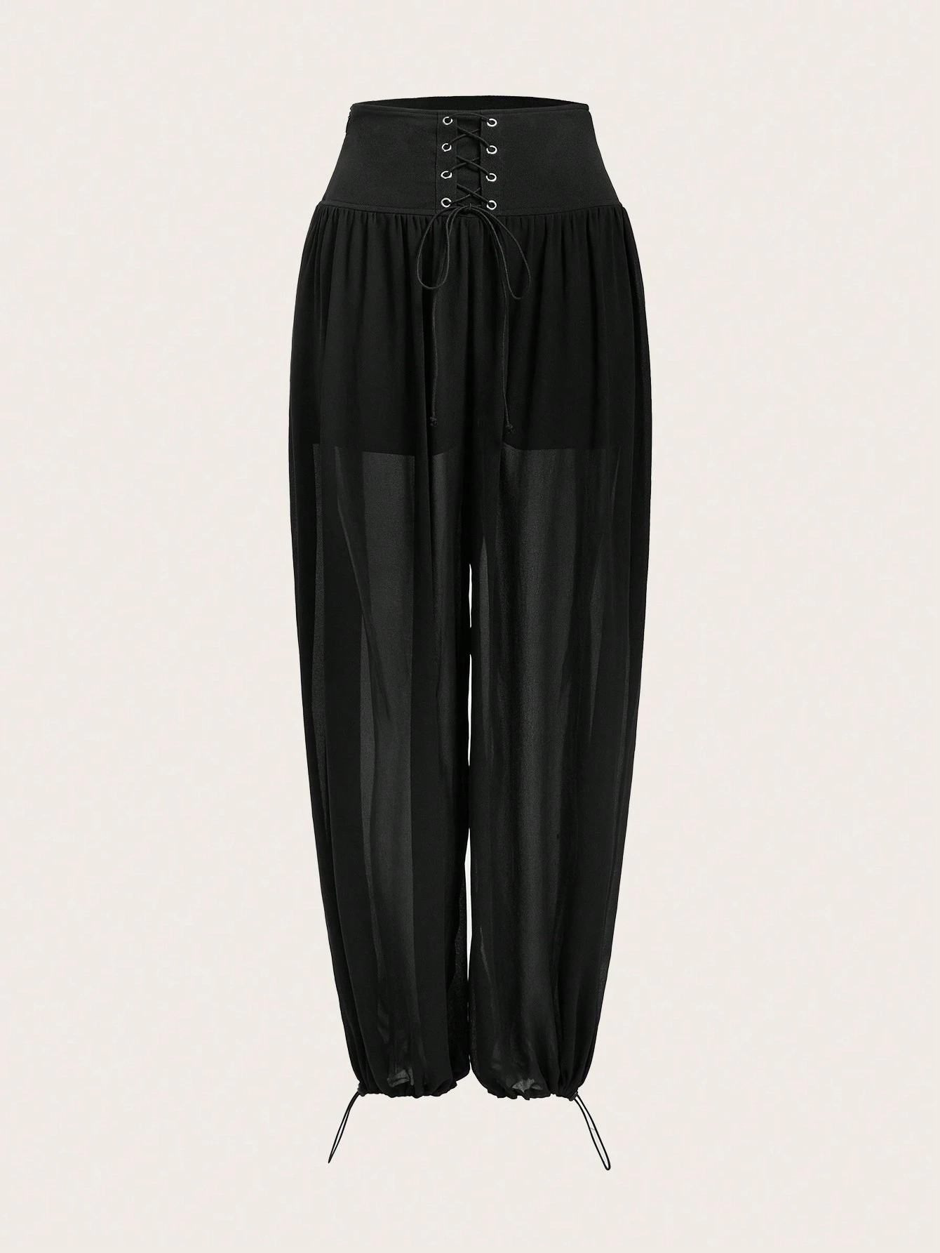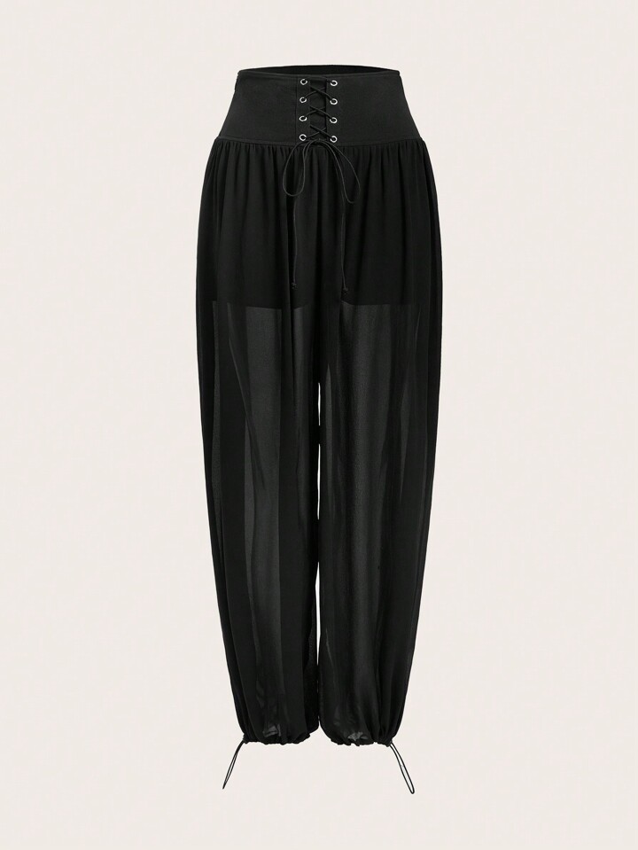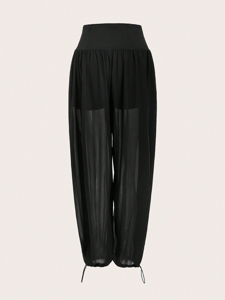 Hose mit Band, breitem Taillenband, Schnürzug am Saum,