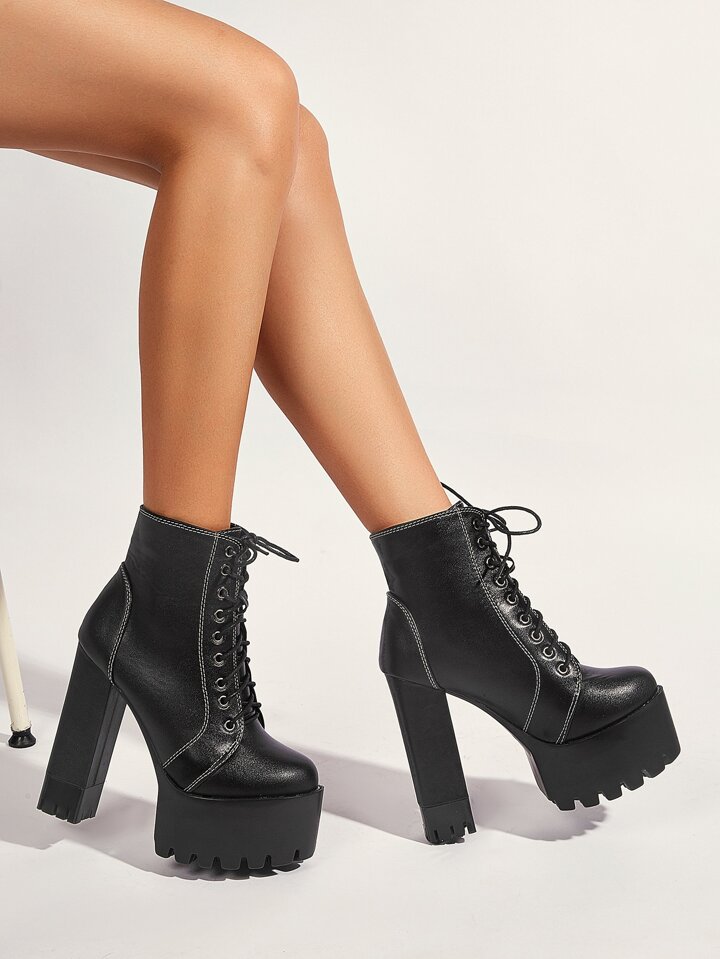 Stiefel mit Band vorn und hoher Absätze