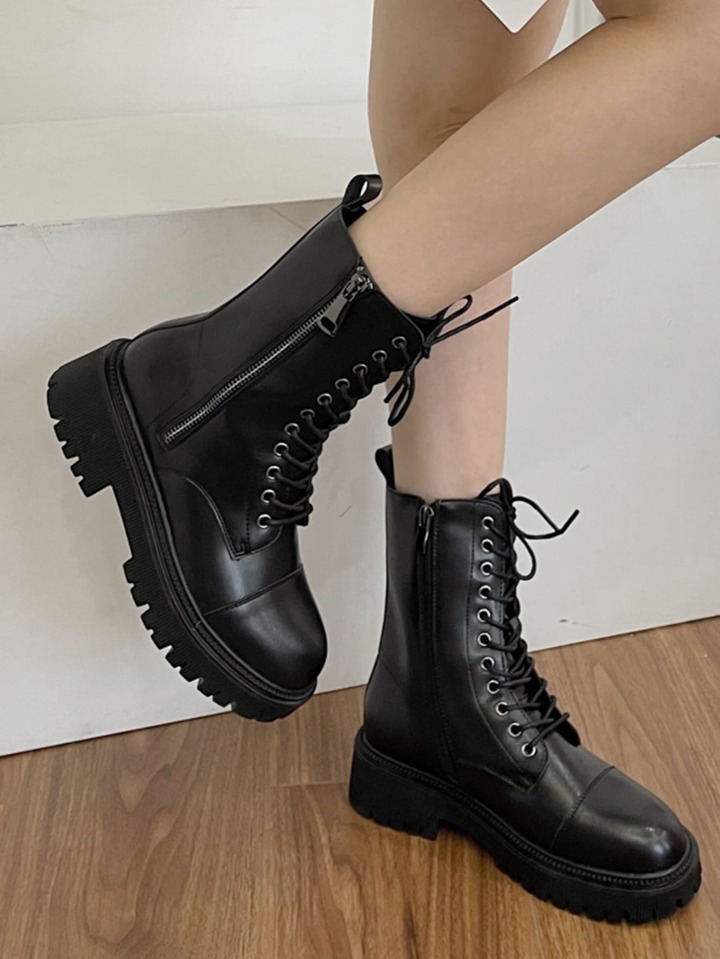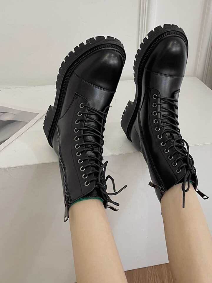 Kampfstiefel mit Band vorne, seitlichem Reißverschluss