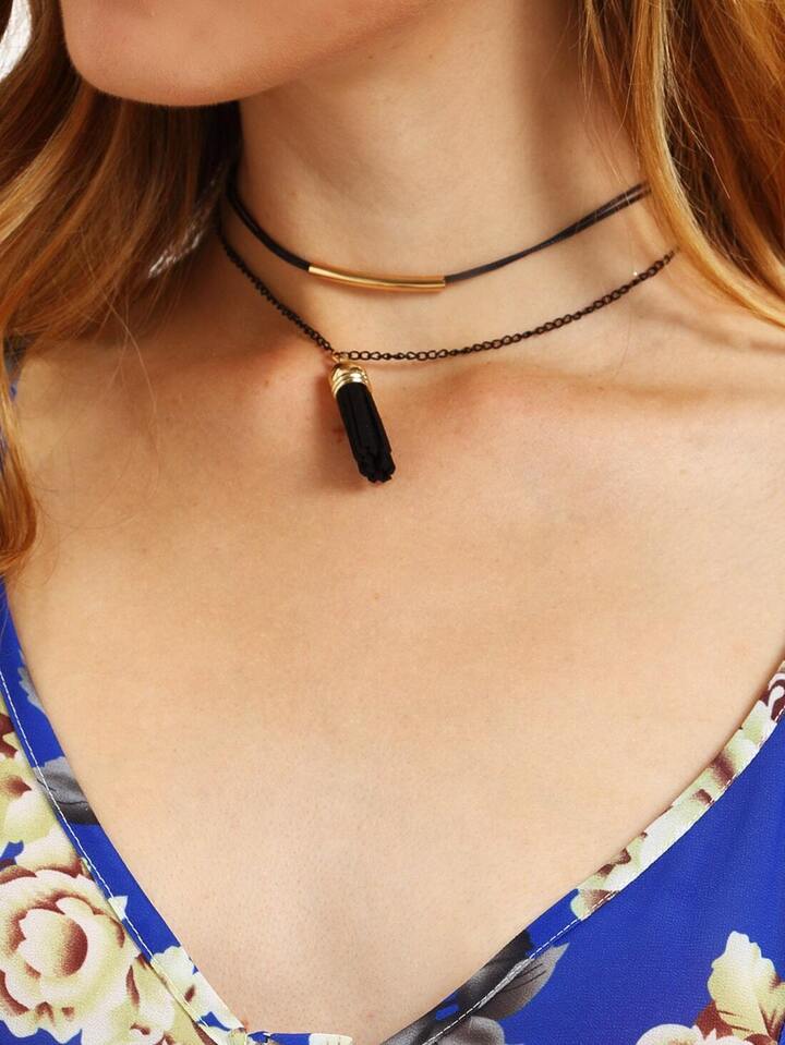 2-reihig-Choker mit Quaste-Anhänger