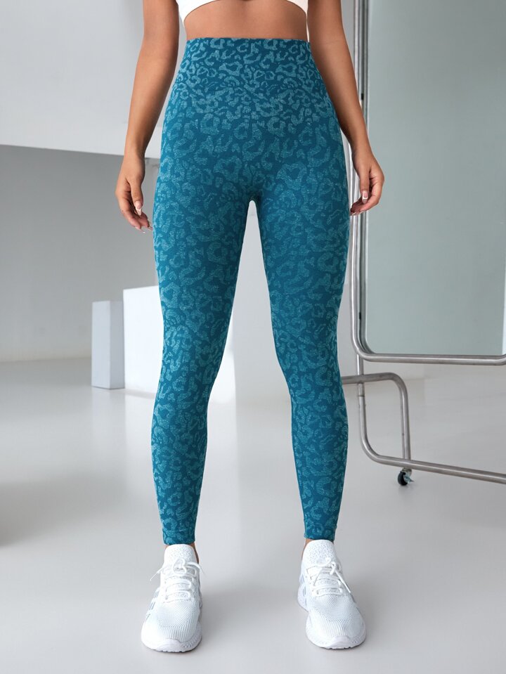 Yoga Strumpfhose mit Leopard Muster, nahtlos, hoher Stretch, breiter Bund, Sport Leggings