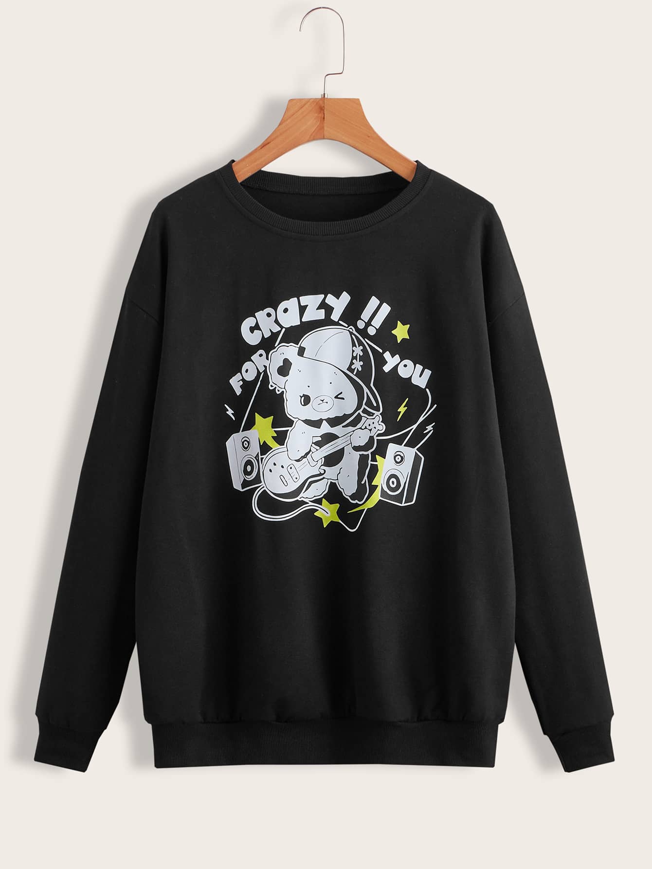 Sweatshirt mit Buchstabe Cartoon Bären Grafik, sehr tief angesetzter Schulterpartie