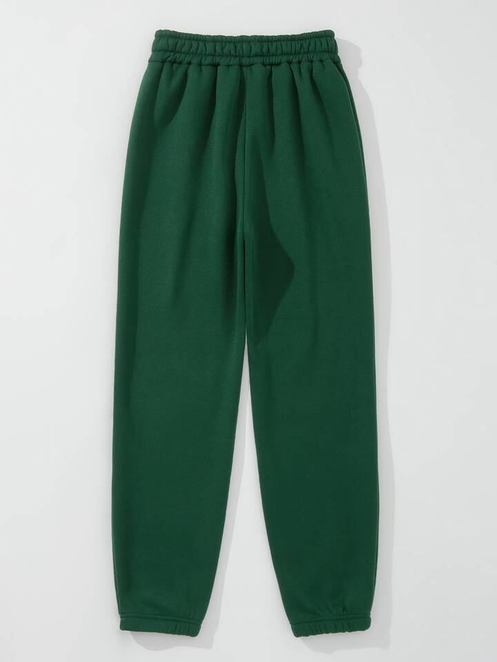 Jogginghose mit Buchstaben Stickerei, elastisch Bund Thermal Futter