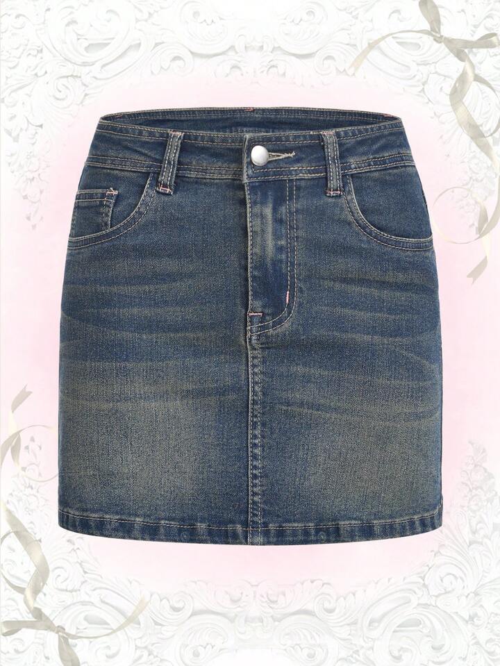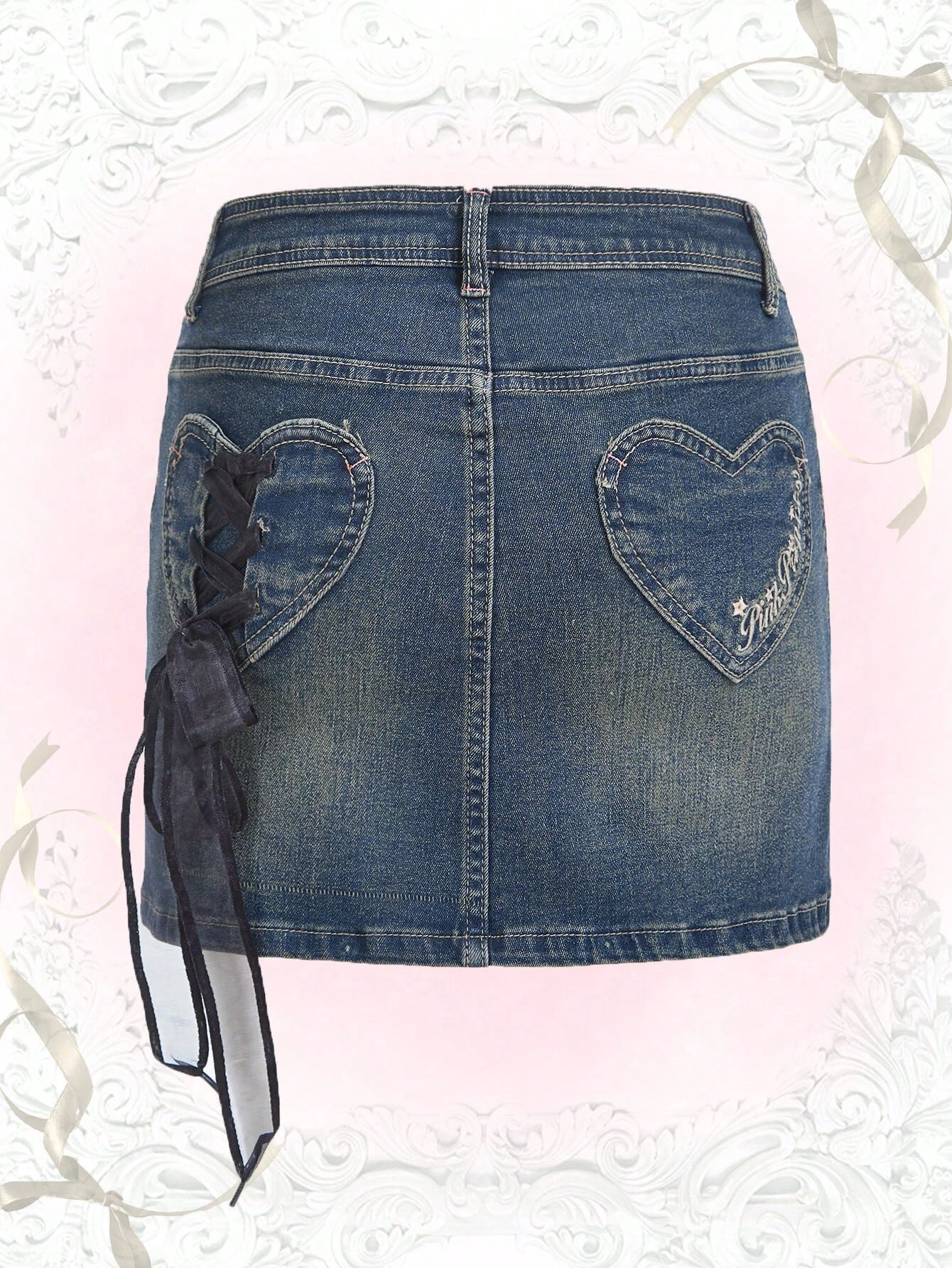 Denim Rock mit Buchstabenstickerei und Schnürung