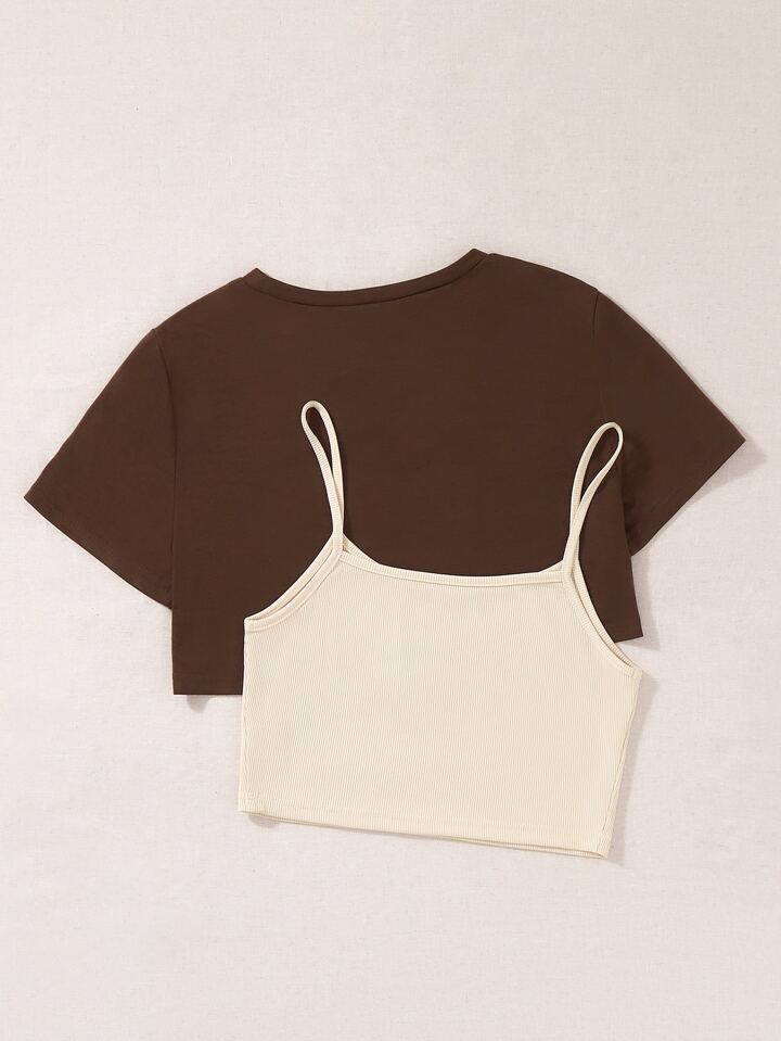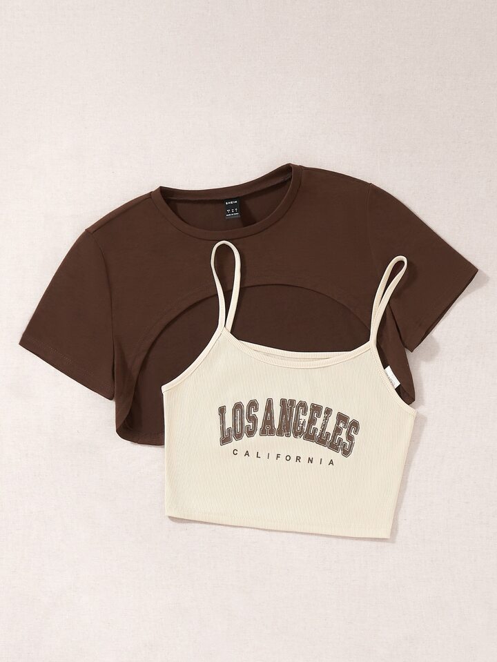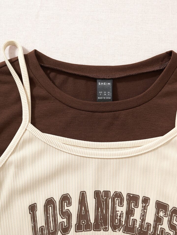 Buchstaben-Grafik Cami Top & High Low T-Shirt Grafik T-Shirts Damen Oberteile