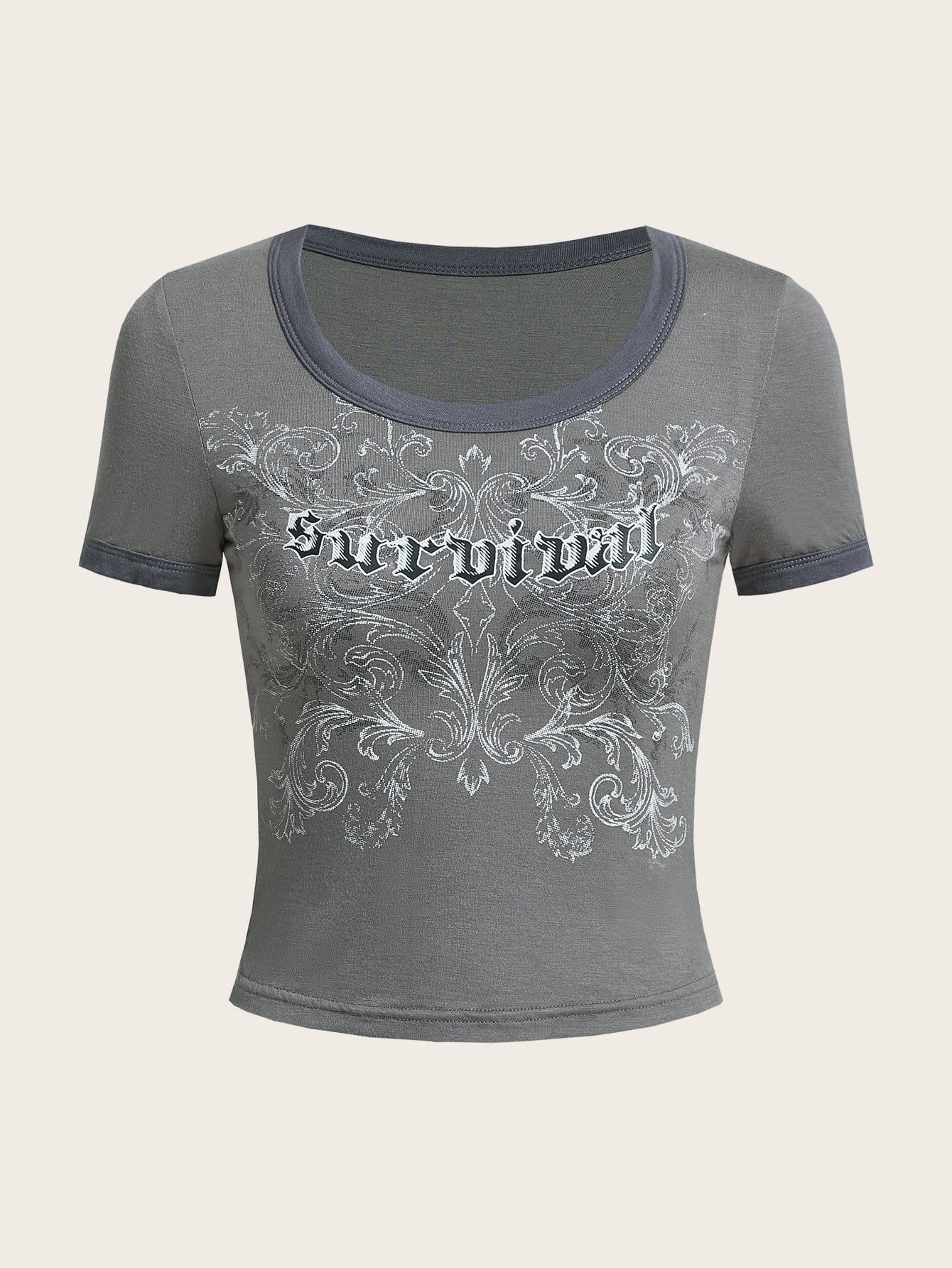 T-Shirt mit Kontrast-Binde, Buchstaben Grafik