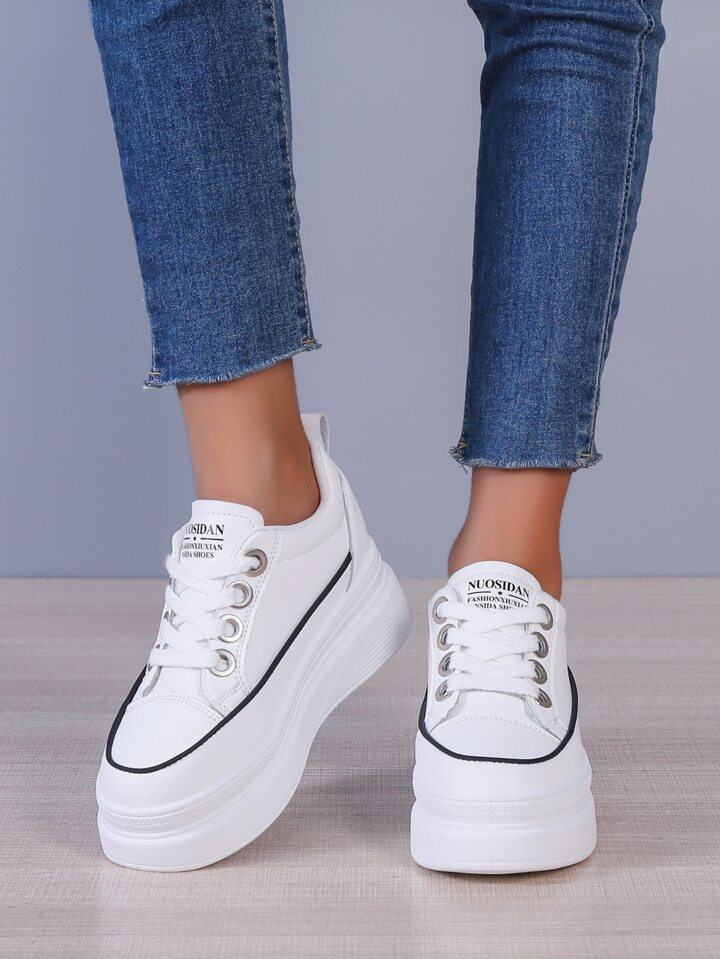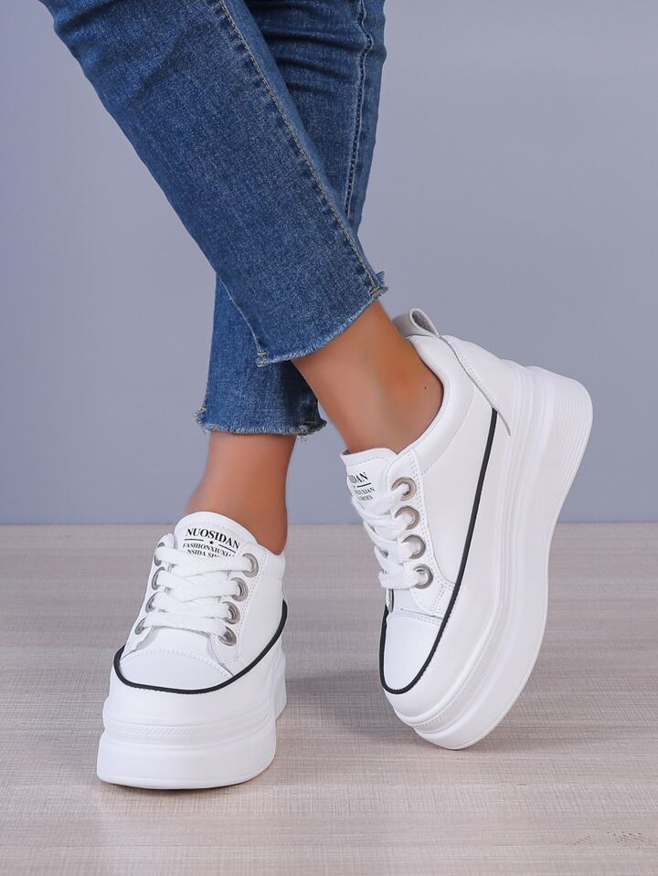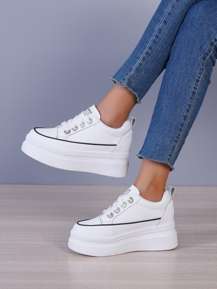 Keil-Sneakers mit Buchstaben Grafik, Kontrast Paspel, Band vorne,