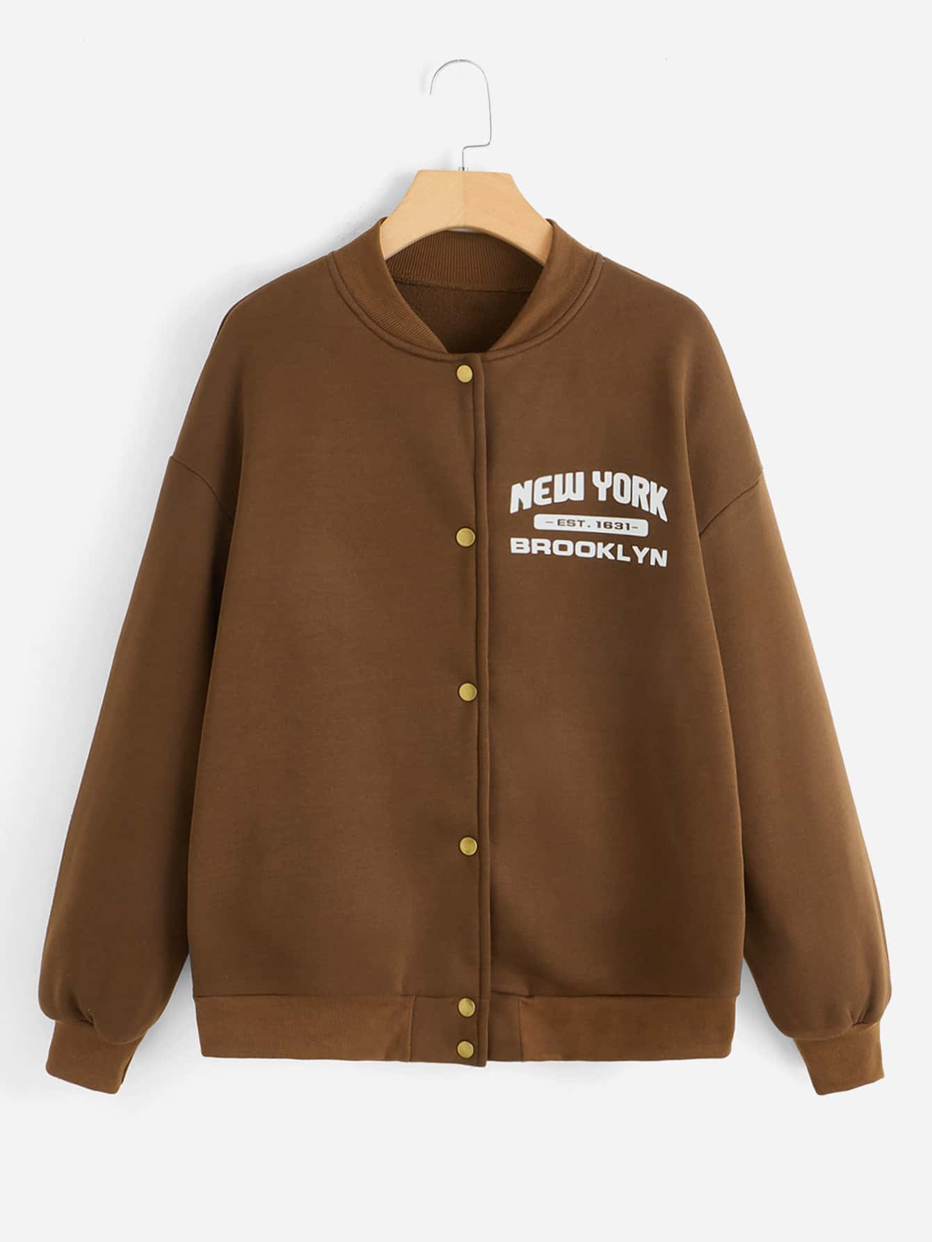 Bomberjacke mit Buchstaben Grafik, Drop Shoulder