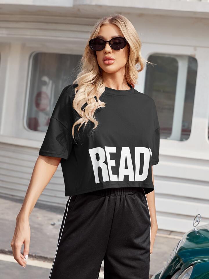 Sport T-Shirt mit Buchstaben Grafik, Drop Shoulder