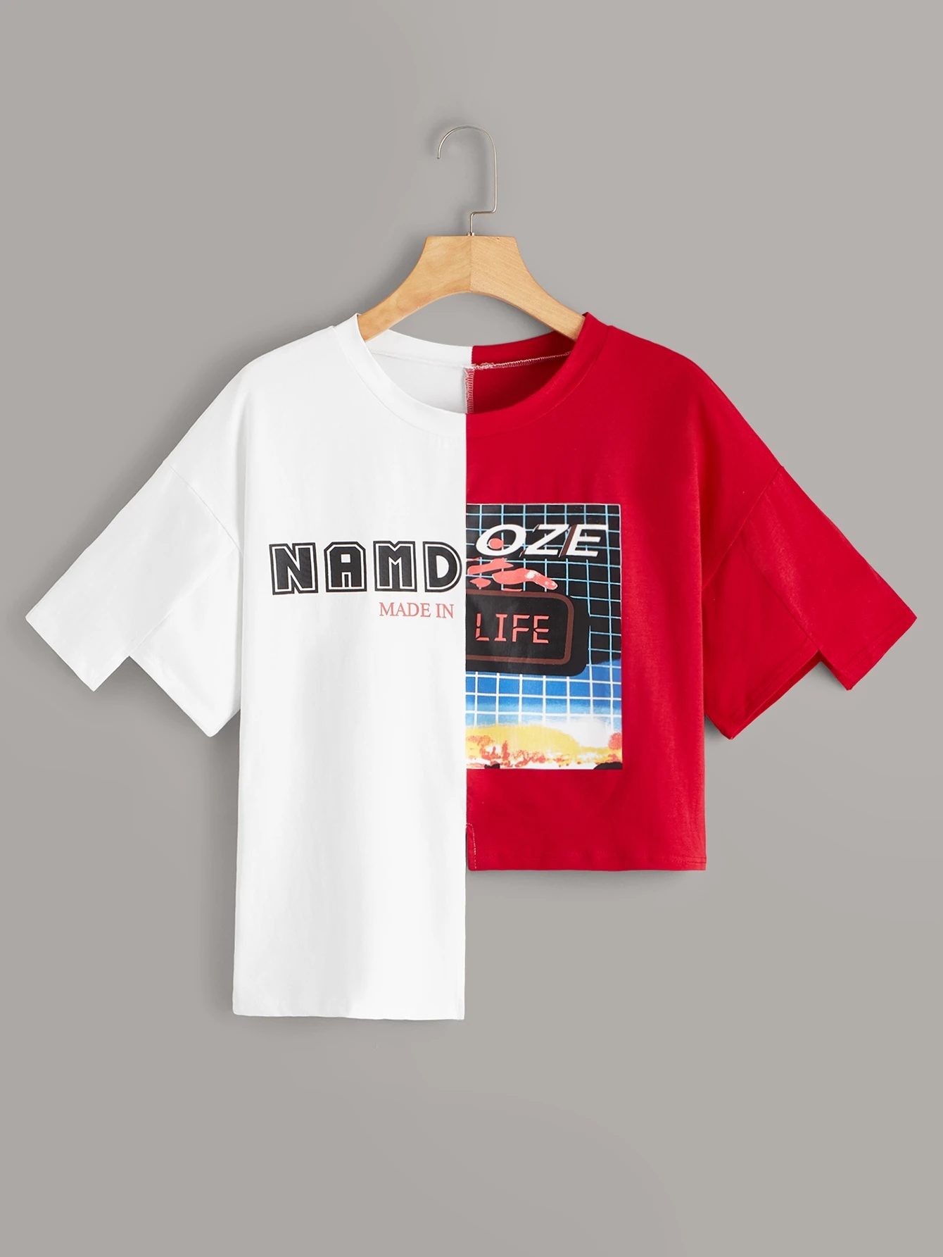 Gespleißtes T-Shirt mit Buchstaben Grafik und asymmetrischem Saum
