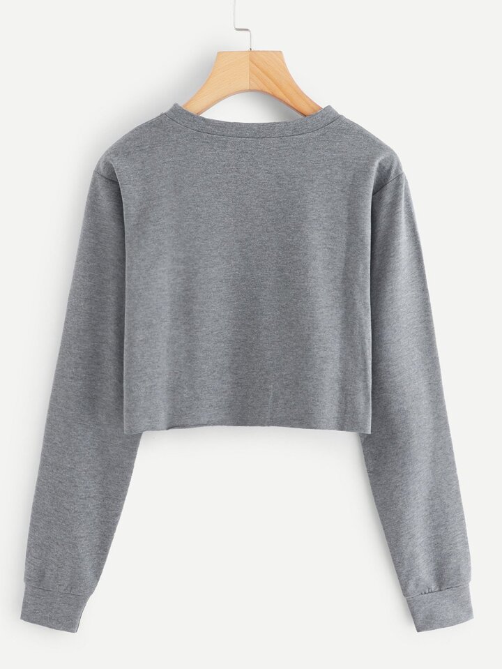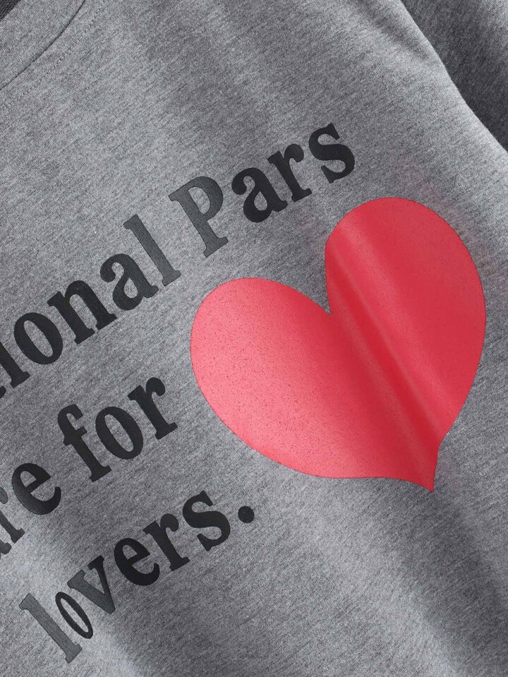Crop T-Shirt mit Buchstaben und Herz Muster
