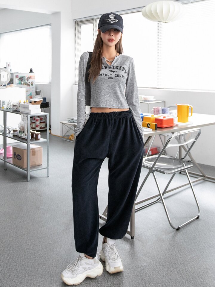 T-Shirt mit Buchstabe & Pferd Muster