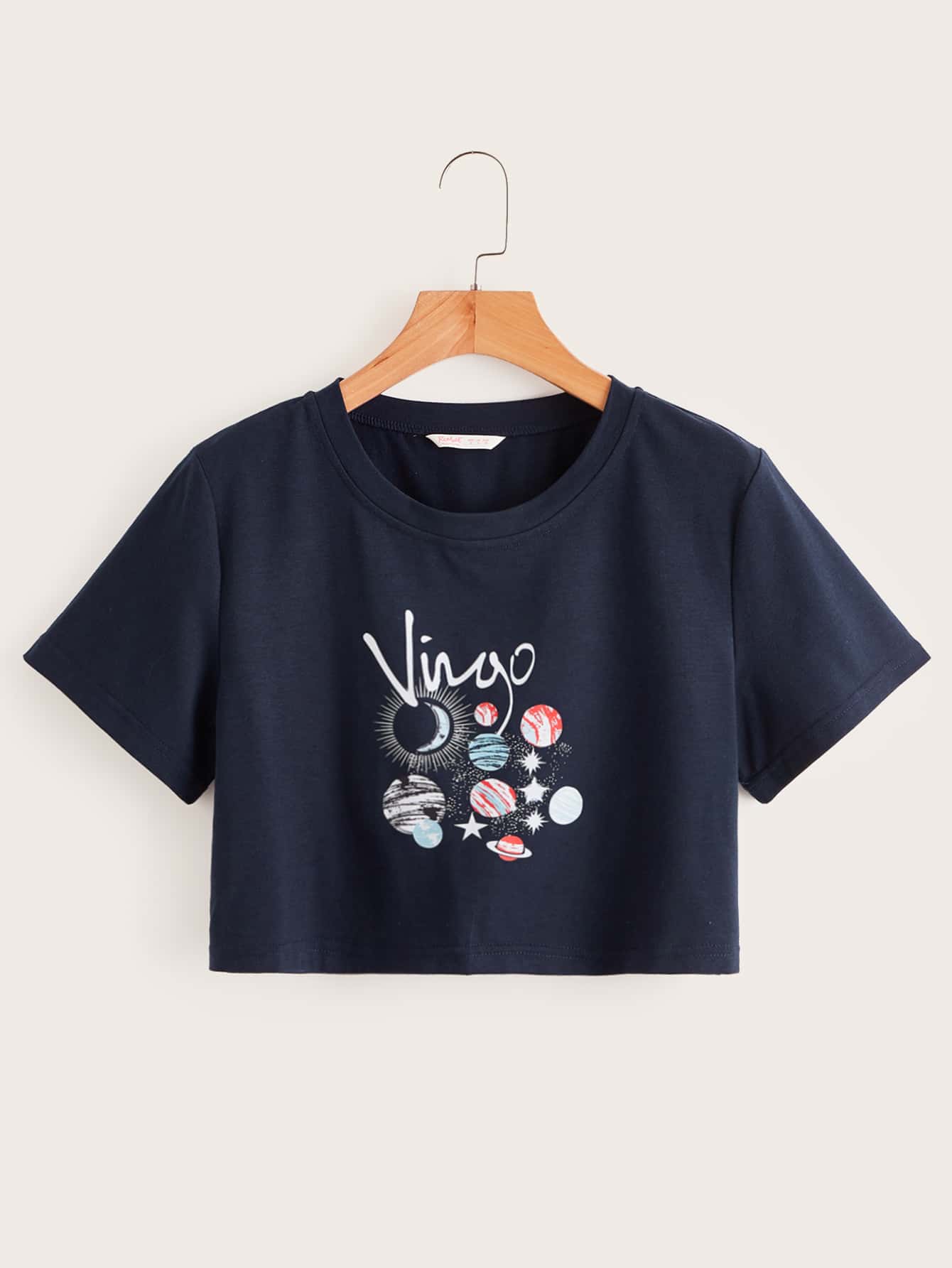 Crop T-Shirt mit Buchstabe, Planet Grafik