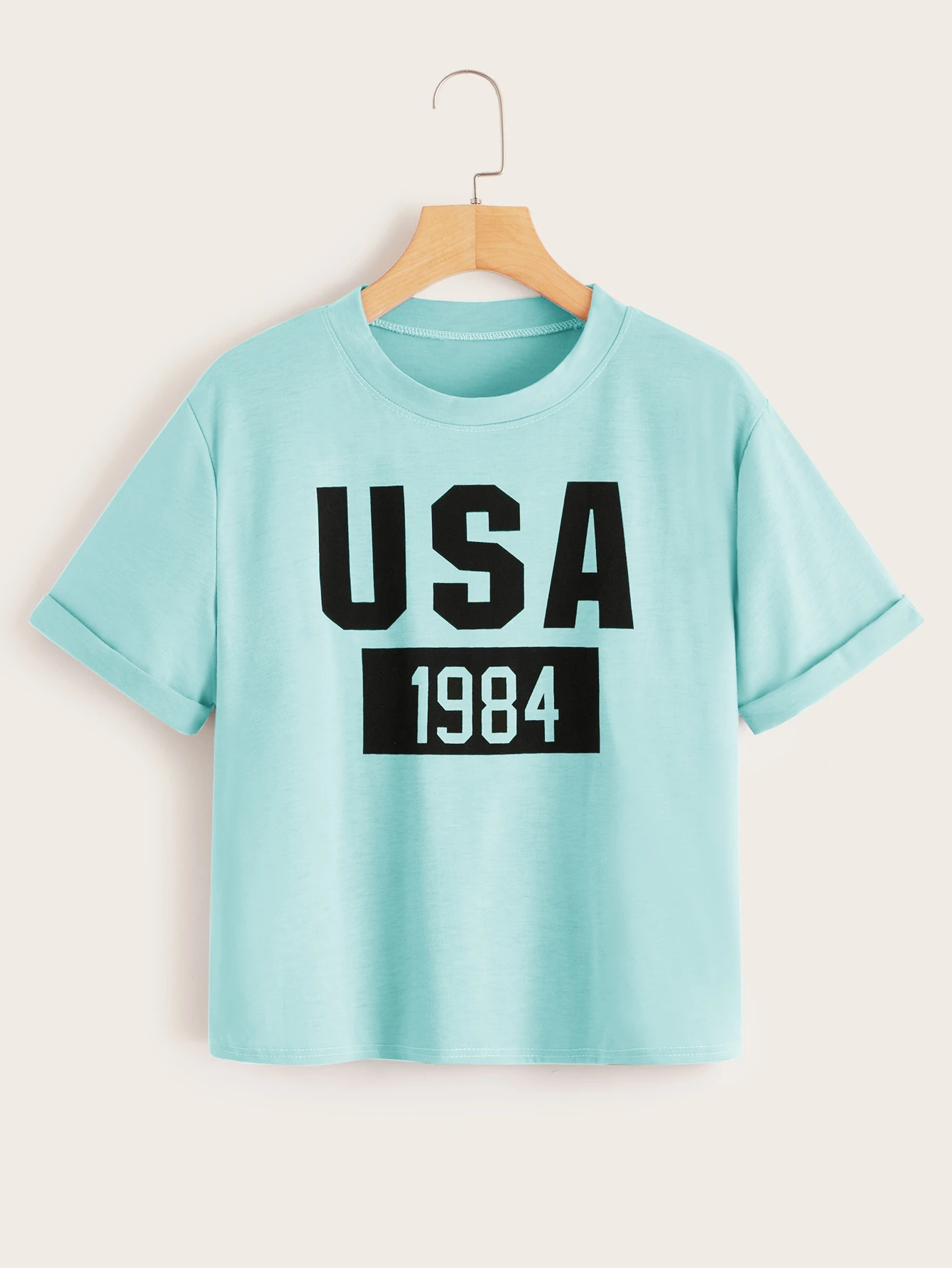 T-Shirt mit Buchstaben Muster und kurzen Ärmeln