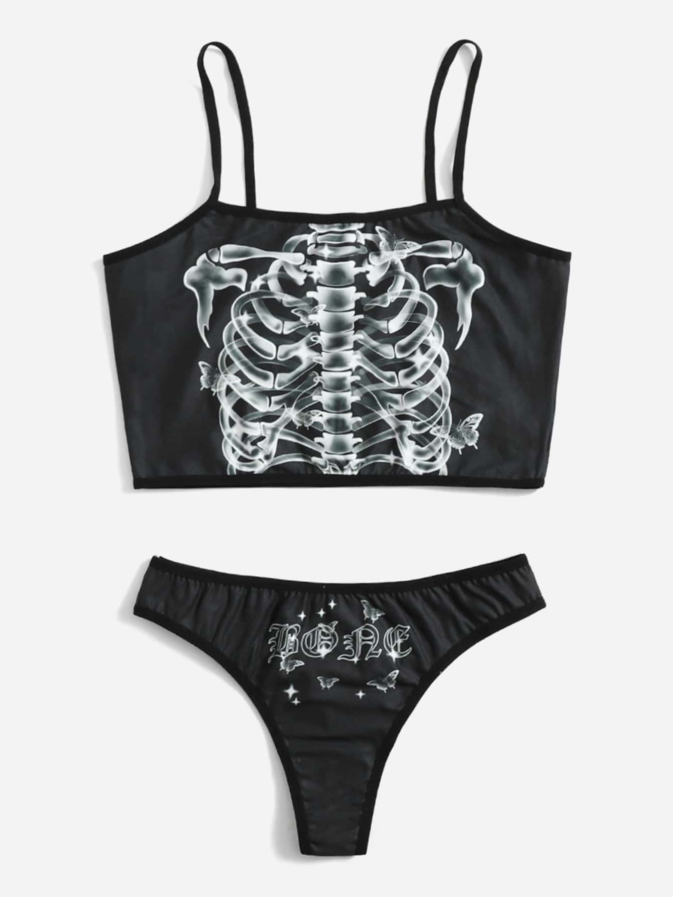 Dessous Set mit Buchstabe Skelett & Schmetterling Grafik