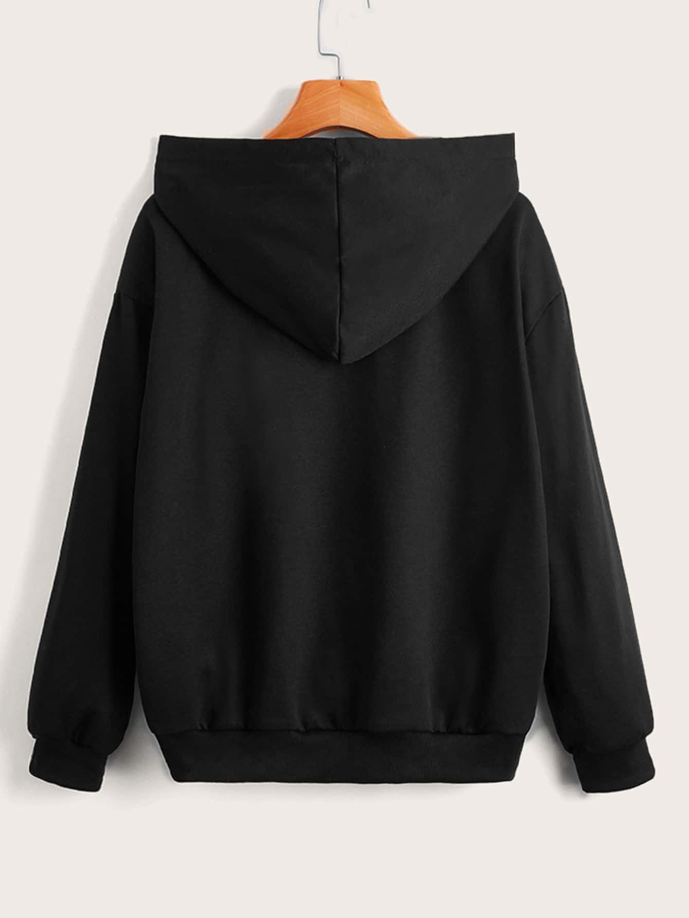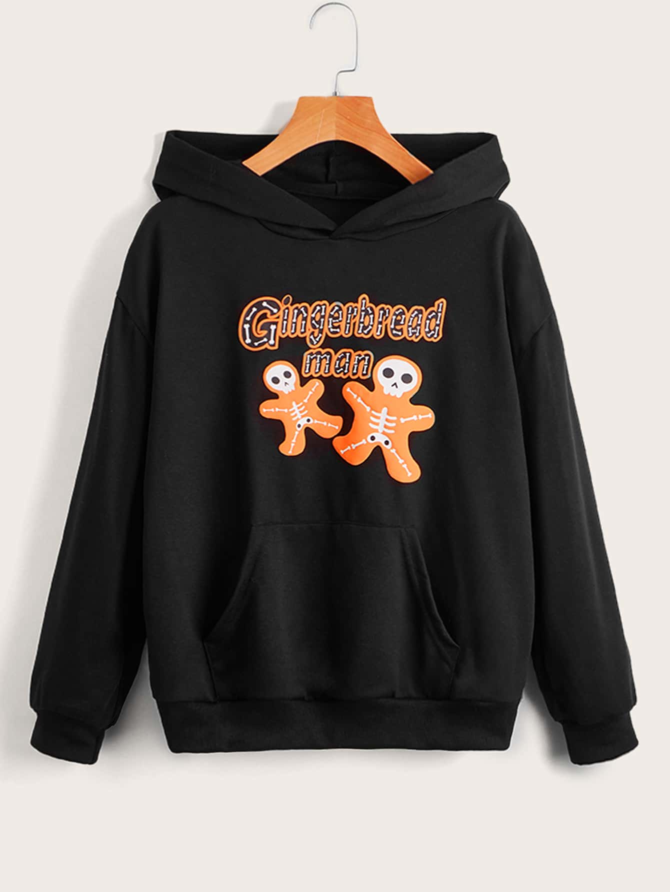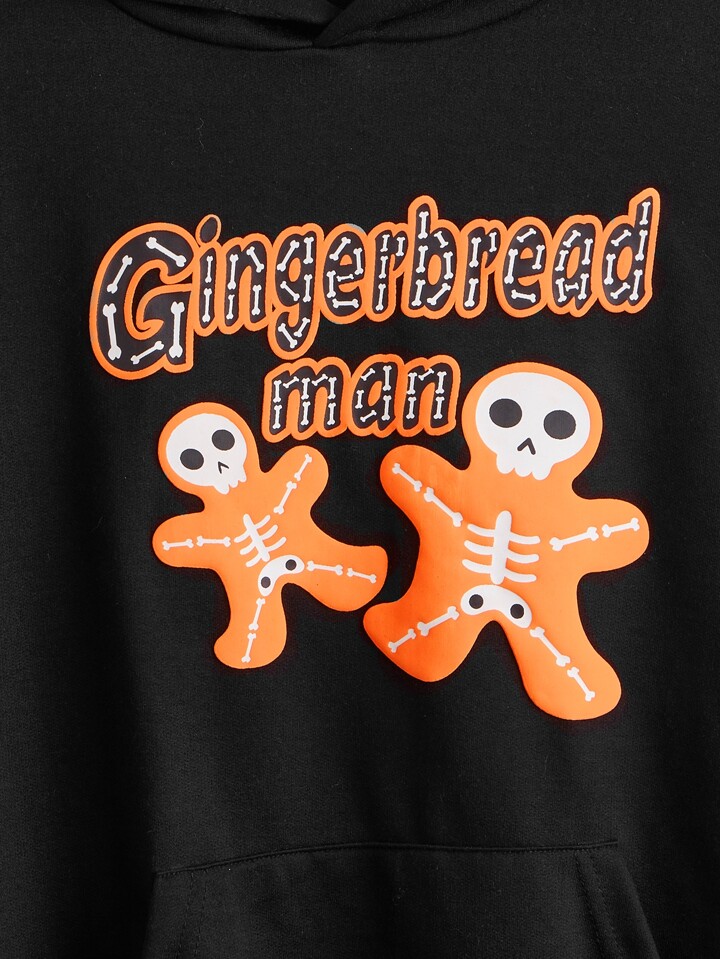 Hoodie mit Buchstabe Schädel Grafik, Tasche