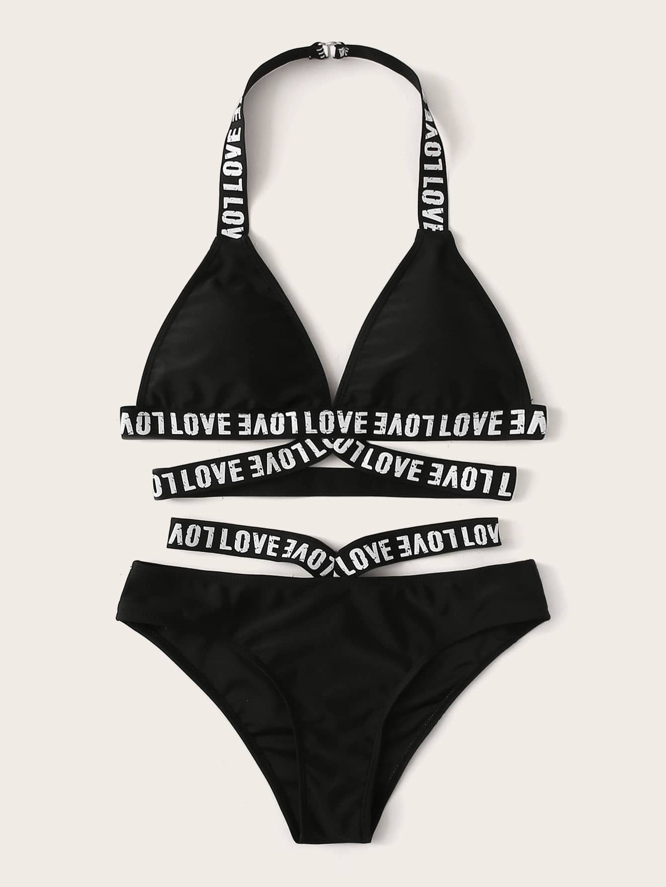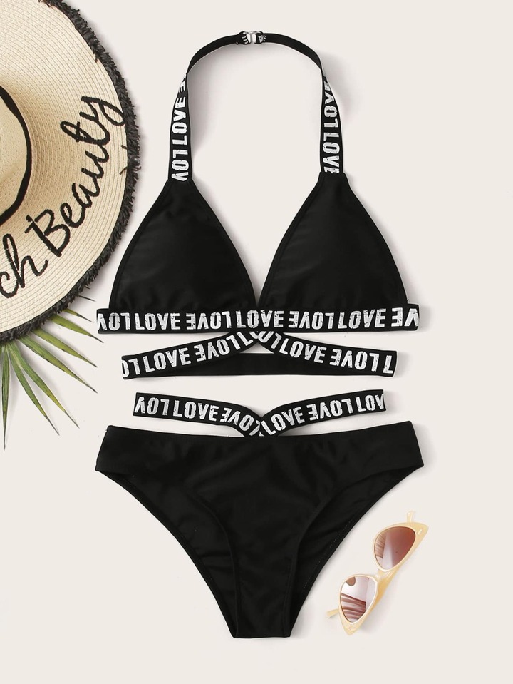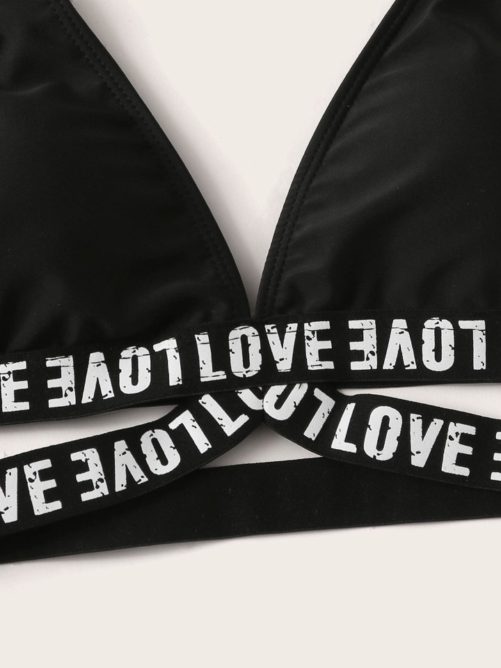 Bikini Set mit Dreiecks-Halterung, Buchstaben-Tape für den Sommerstrand