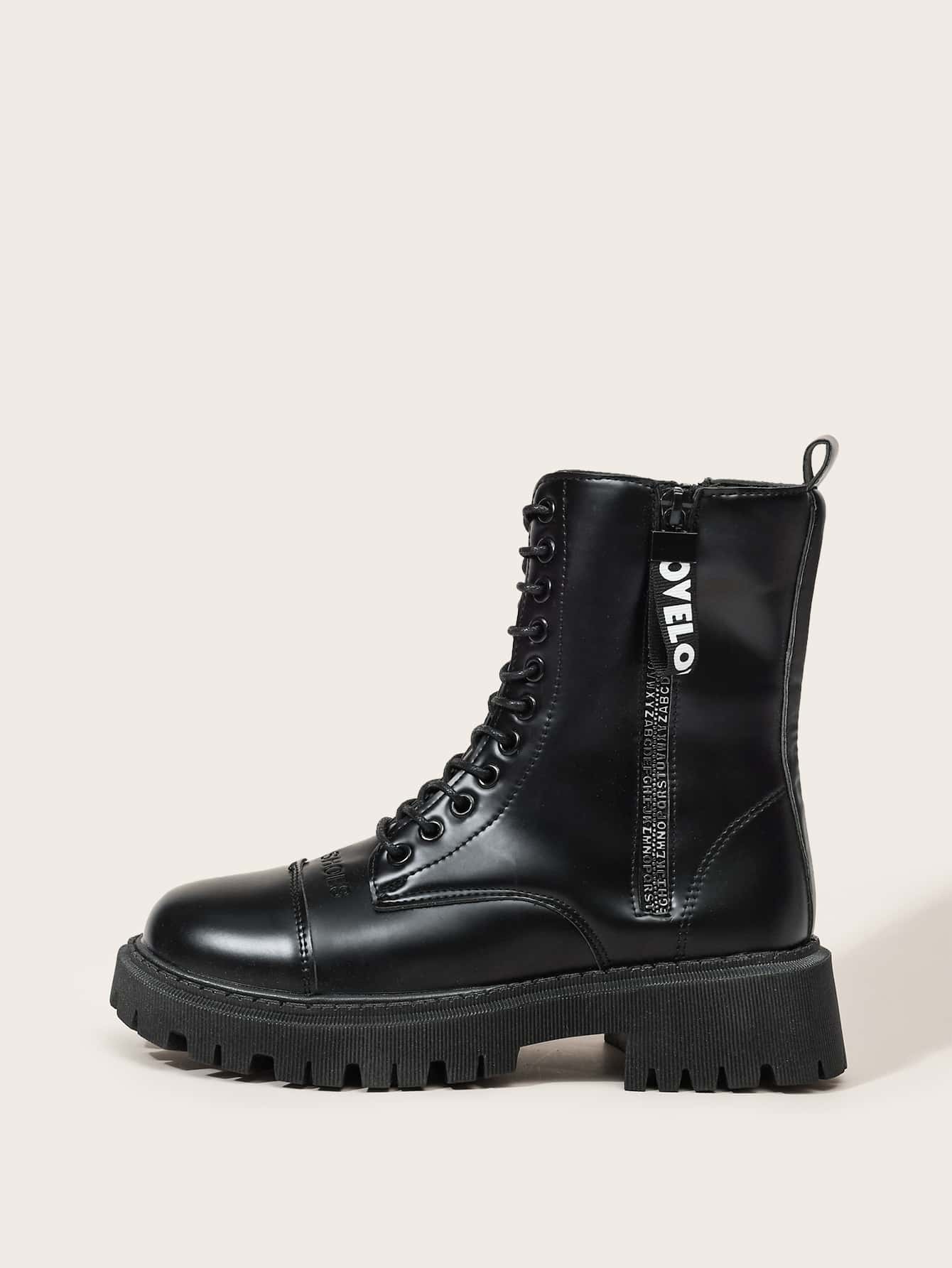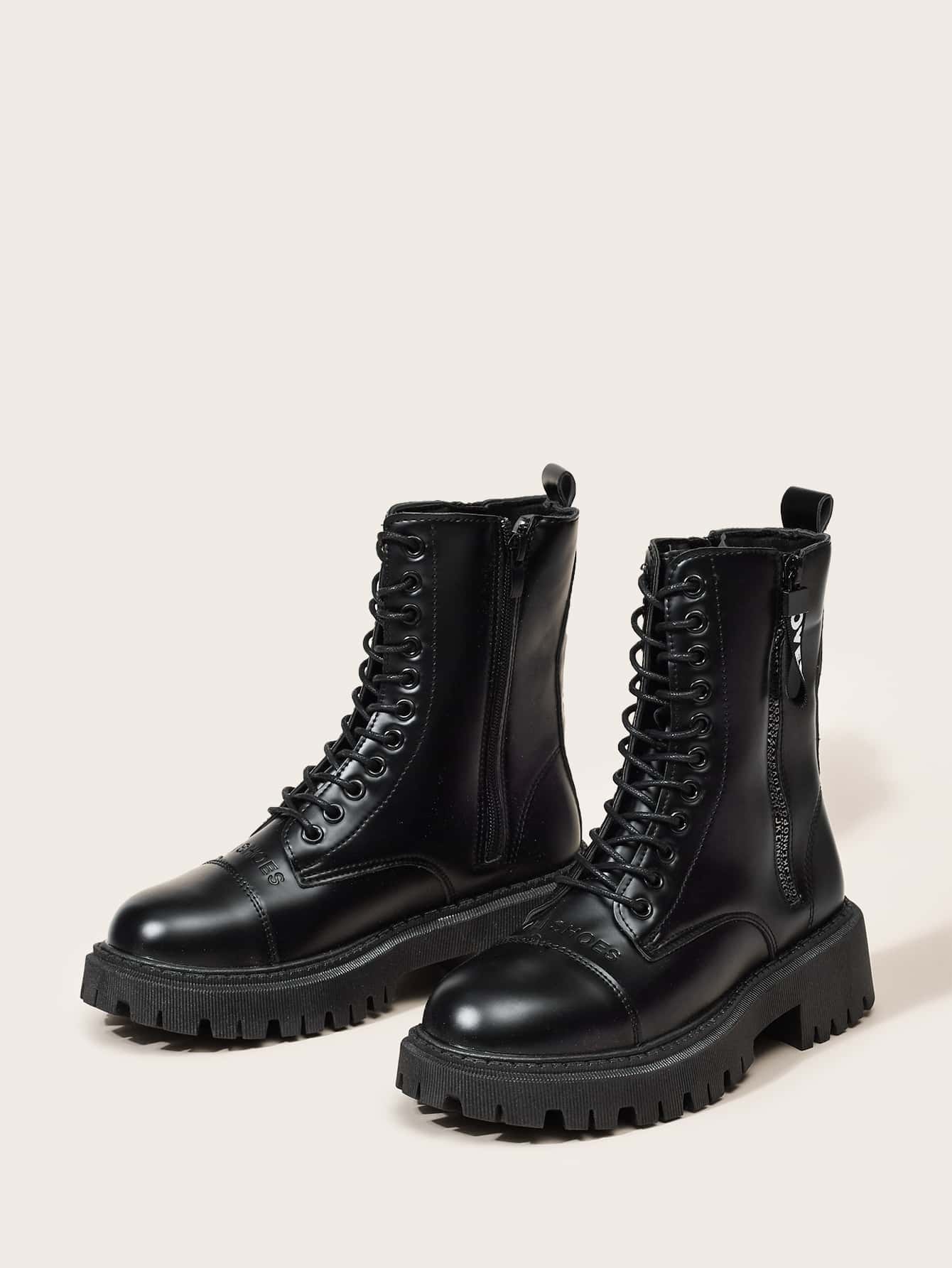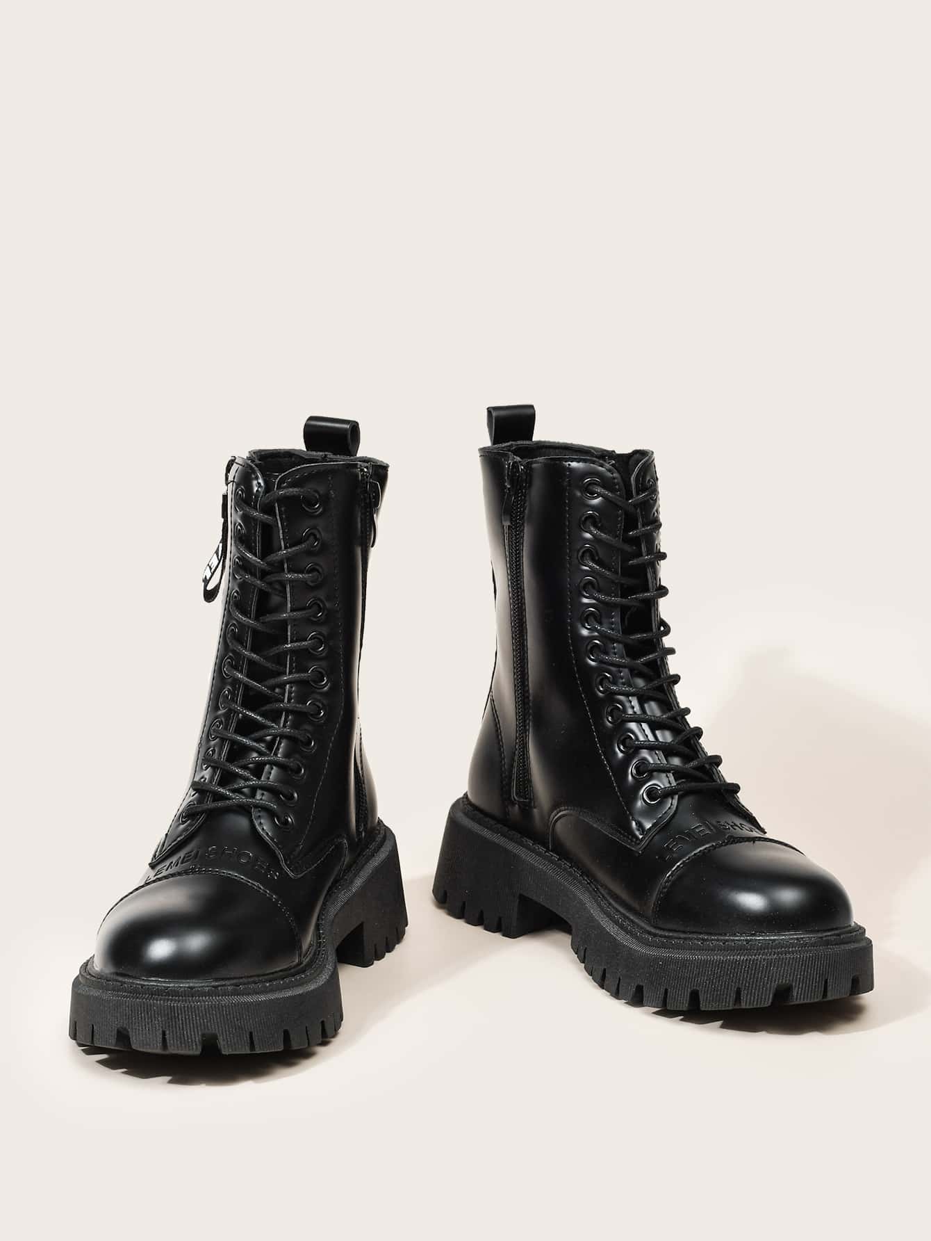 Kampfstiefel mit Buchstaben Muster und Reißverschluss zum Schnüren