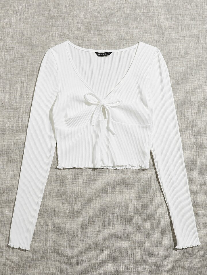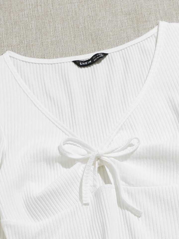 Rippenstrick T-Shirt mit gekräuseltem Saum und Knoten vorn
