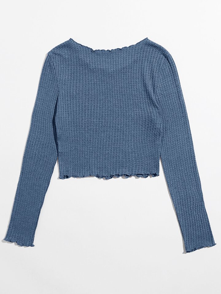 Waffelstrick T-Shirt mit gekräuseltem Saum