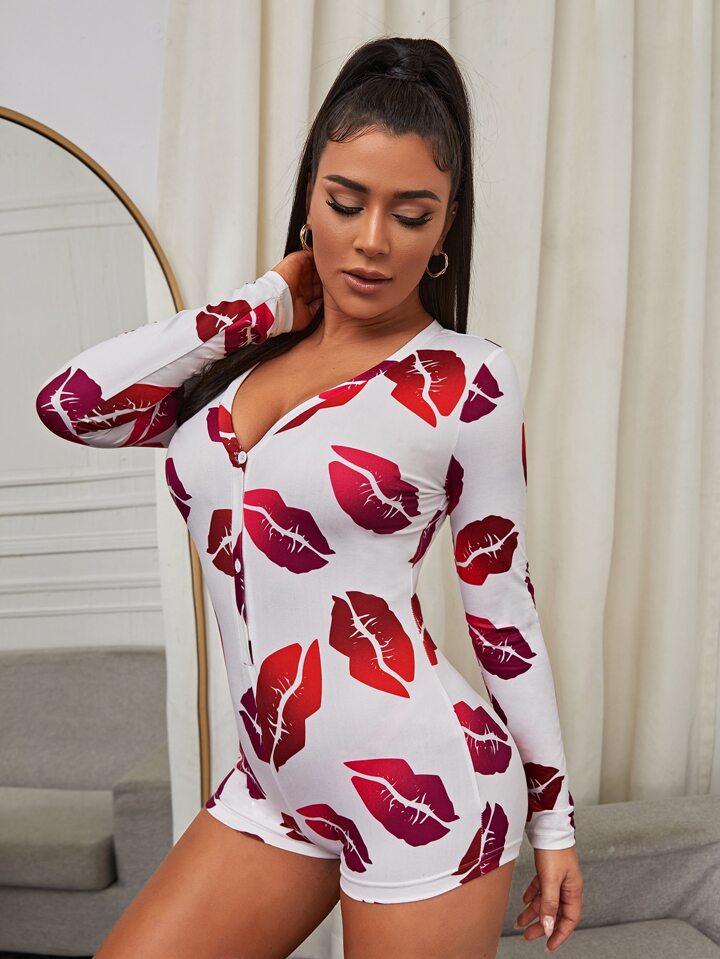 Pyjama Onesie mit Lippe Muster